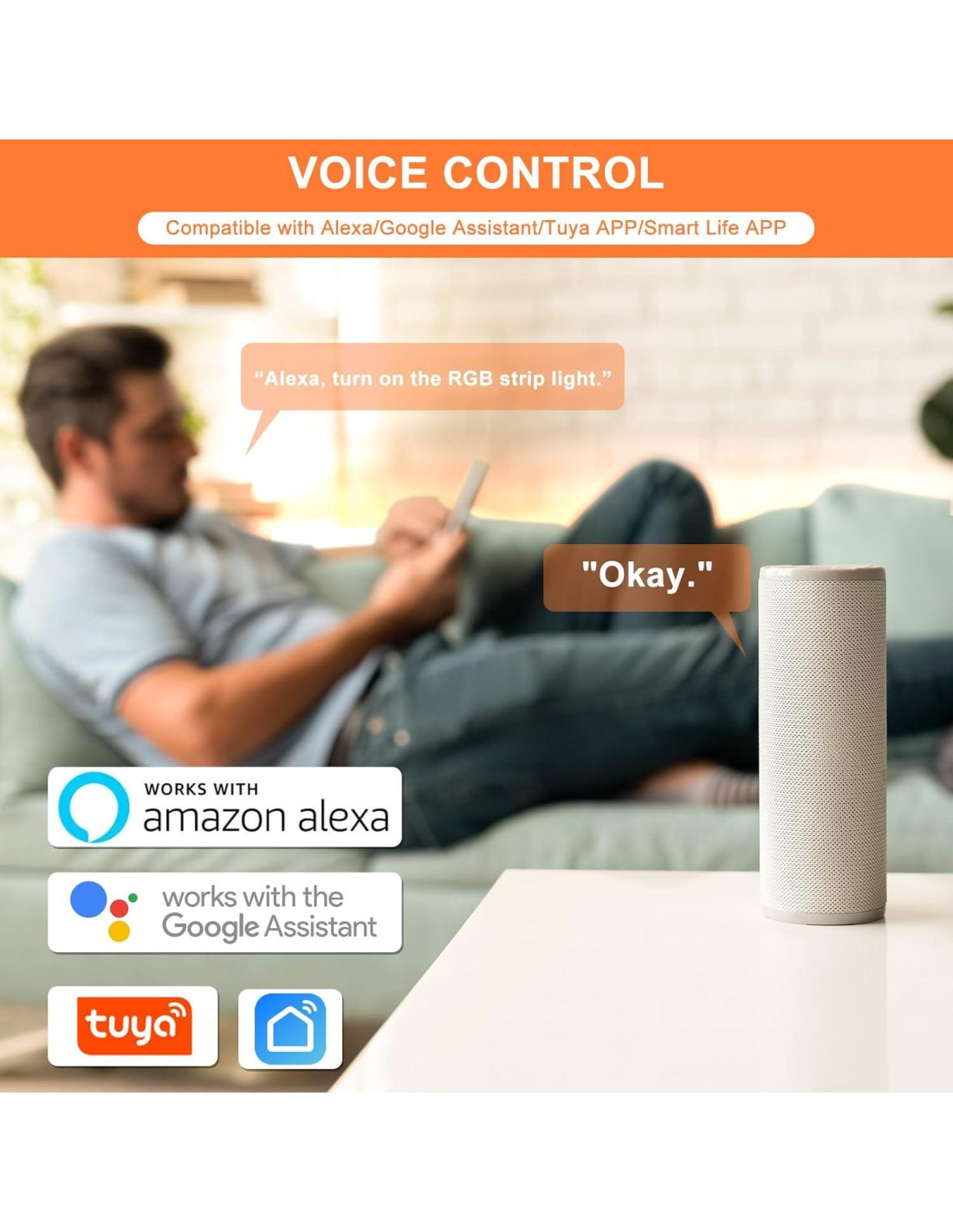 - Soporte para Control por Voz: Compatible con Alexa/Asistente de Google/Tuya/APP Smart Life. Puedes agregar el dispositivo en la APP Tuya/Smart Life (asegúrate de usar Wi-Fi de 2.4GHz), y luego agregar la habilidad "Smart Life" en tu Alexa/Asistente de Google. Puedes controlar tu tira de luz a través de comandos de voz cuando completes la configuración anterior.