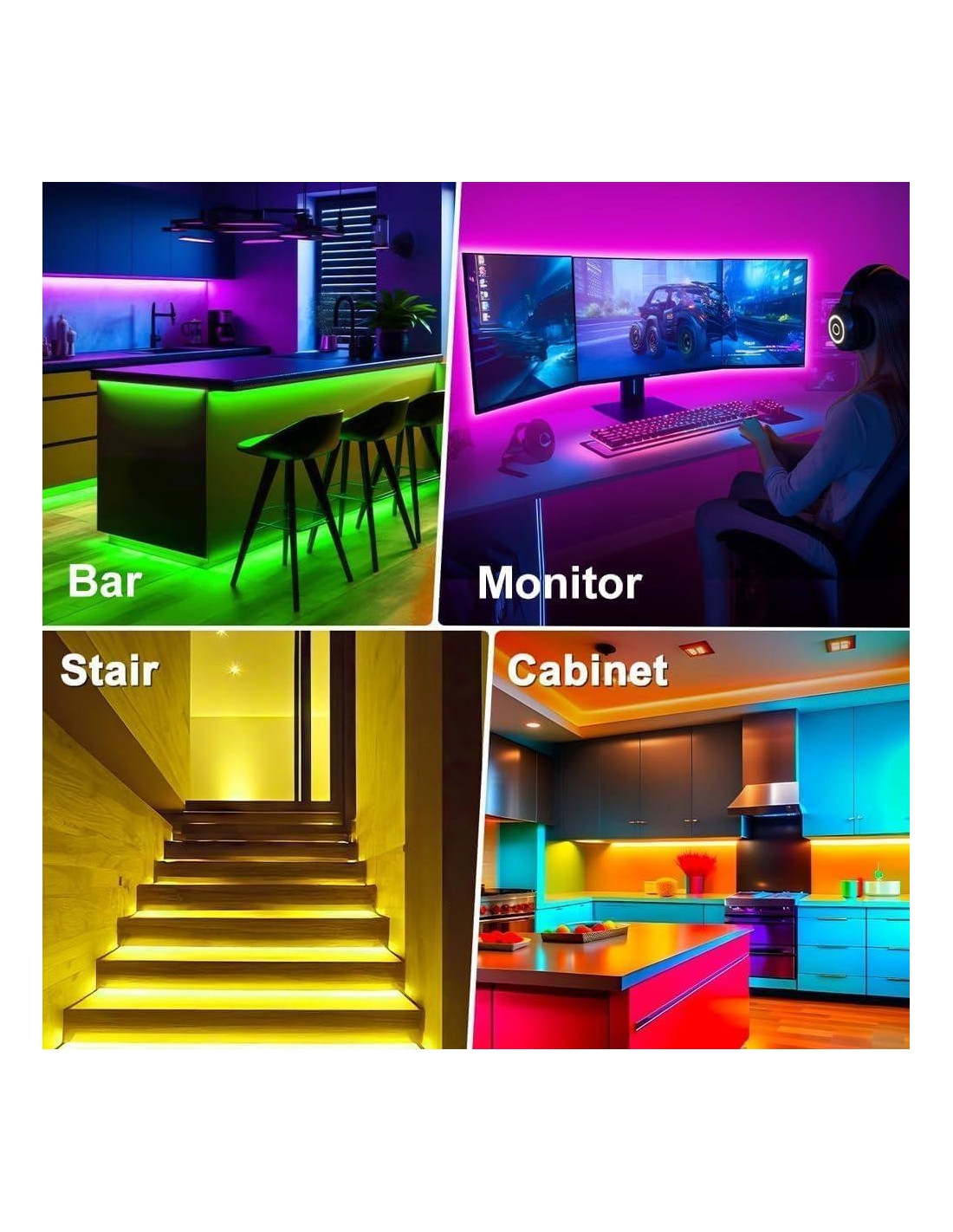 - Control inteligente para iluminación LED detrás de la TV Controla las luces LED detrás de la TV a través de un control remoto o aplicación, selecciona colores, cambia modos y ajusta el brillo; Escanea y descarga la aplicación, conecta Bluetooth para controlar la retroiluminación LED de la TV, la interfaz de la aplicación es rica y ajustable.