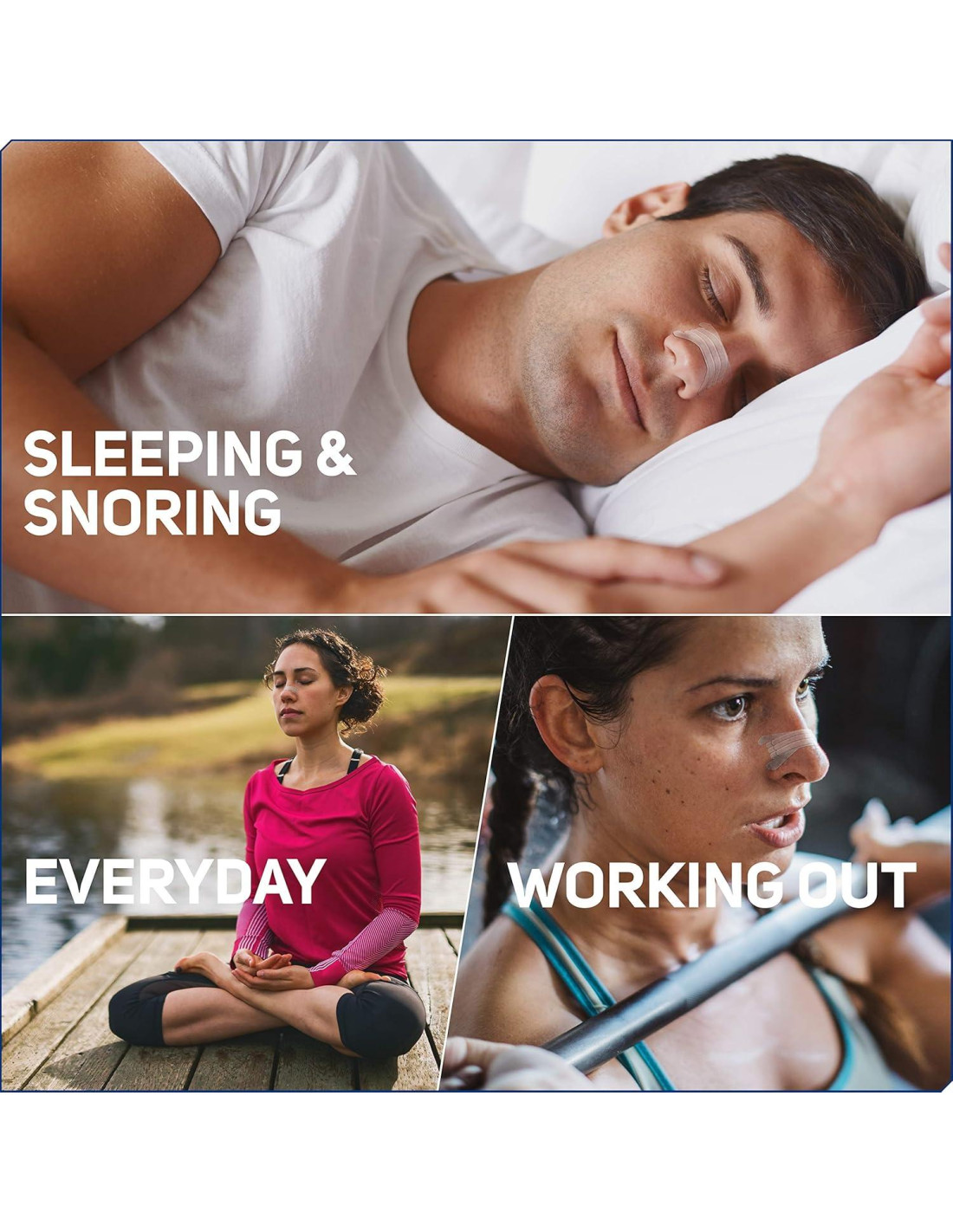 - CÓMODO Y FÁCIL | 1. Lavar la nariz con jabón y agua, secar completamente, 2. Centrar la tira nasal sobre el puente de la nariz, 3. Presionar y mantener durante 30 segundos