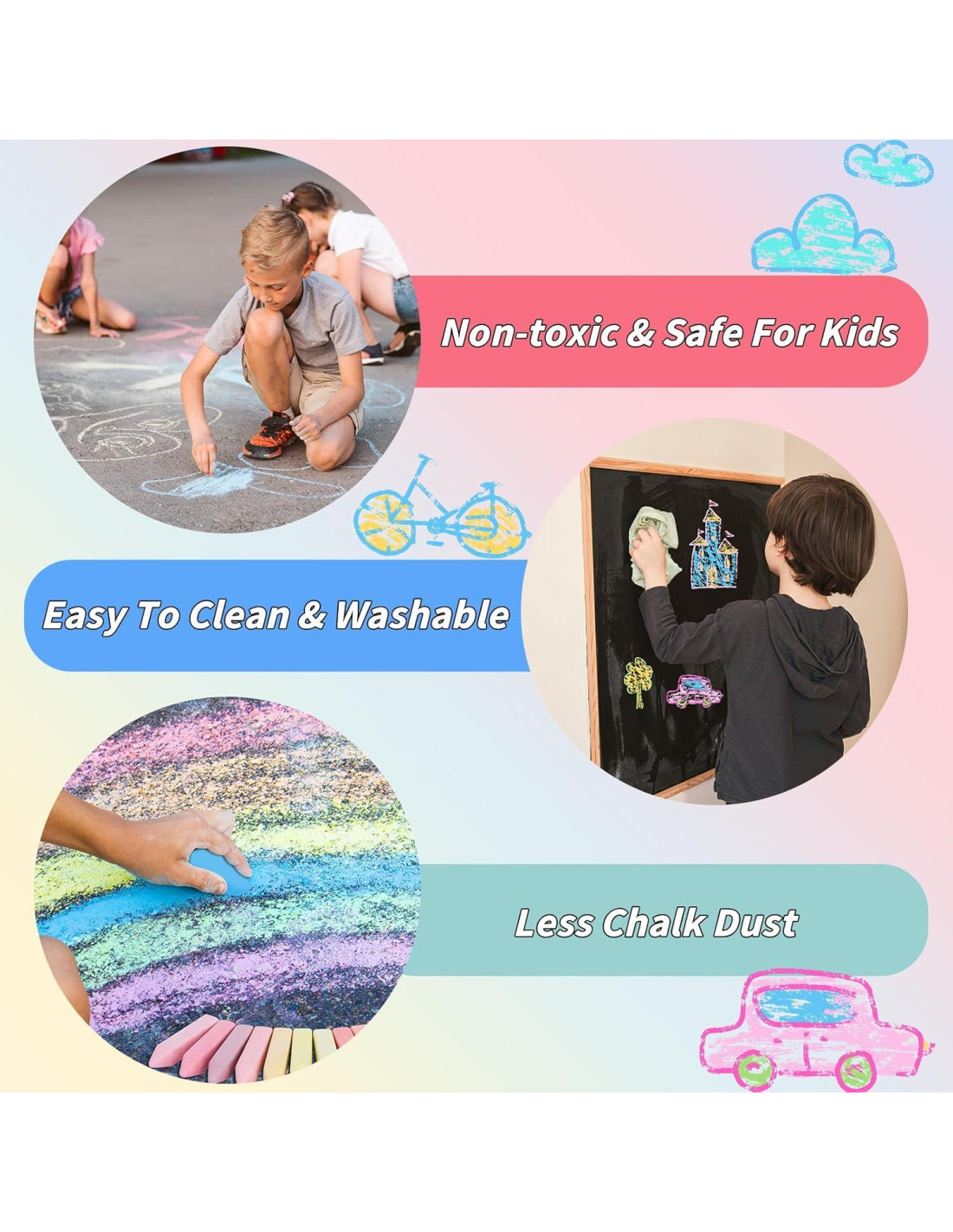 - Materiales Seguros para Niños y Colores Vibrantes La tiza de acera multicolor a granel está especialmente formulada para minimizar el polvo de tiza y es segura para uso en interiores y exteriores. Incluye azul, verde, rosa, naranja, púrpura, amarillo, blanco, rojo, etc. Las tizas lavables a granel son coloridas y vibrantes. Satisfacen la fantasía de los niños sobre los colores de la naturaleza.