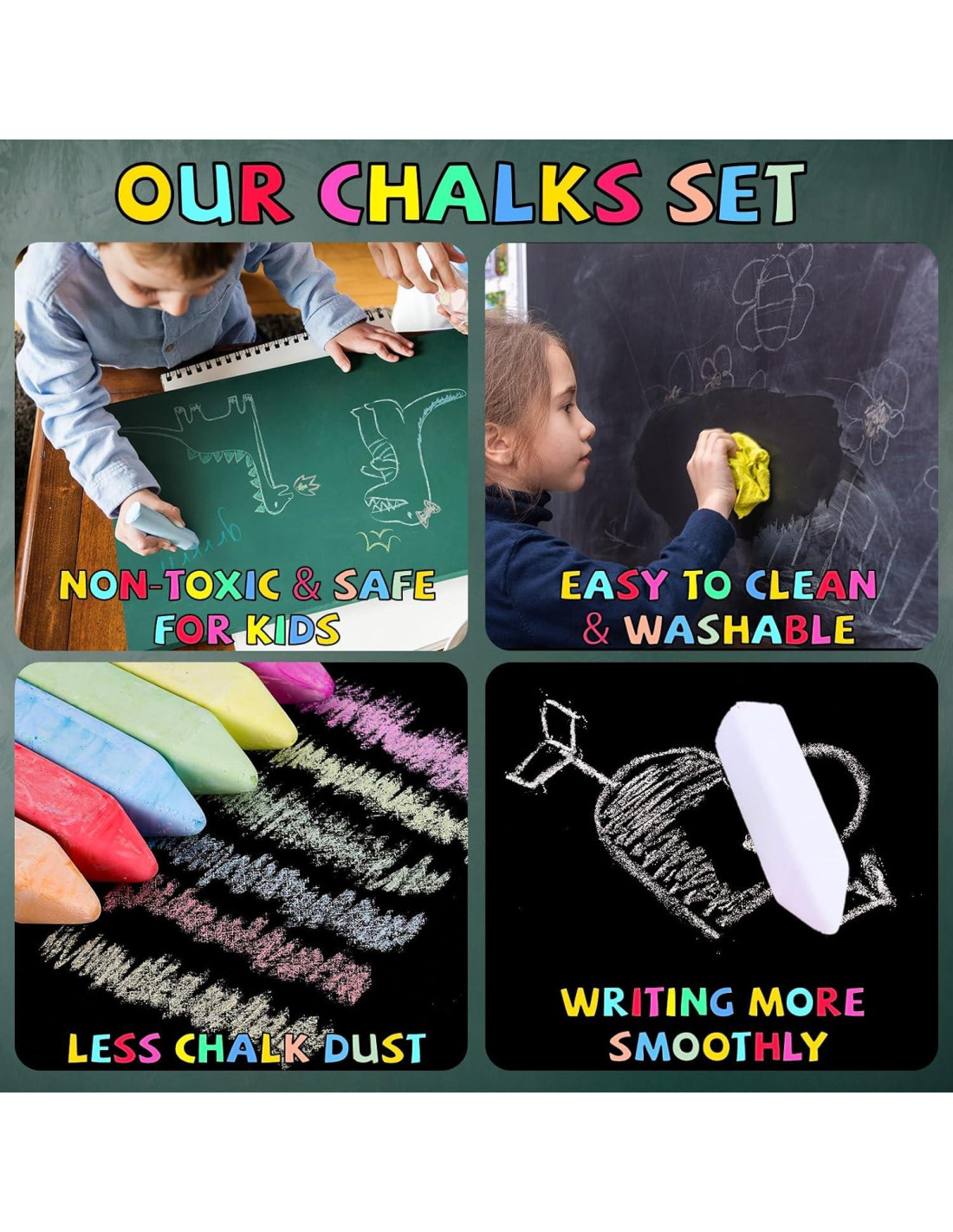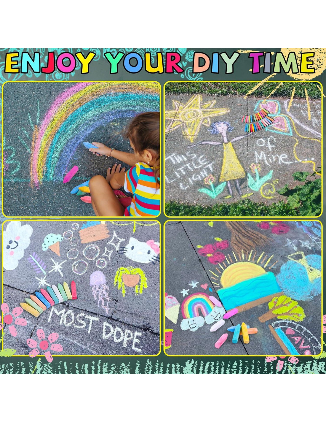 - ALEGRÍA INFINITA: Este Juego de Tiza Colorida es una maravillosa selección para niños que aman crear artes y dibujos llamativos. Nuestro juego de tiza para acera es una excelente opción de regalo para vacaciones de verano, cumpleaños, obsequios de fiestas, Navidad, Pascua y más. Perfecto para suministros de aula, actividades de recreo o cualquier ocasión que despierte la creatividad. Este juego de tiza colorida es un imprescindible para los niños que aman crear vibrantes obras de arte al aire libre y disfrutar del juego artístico.