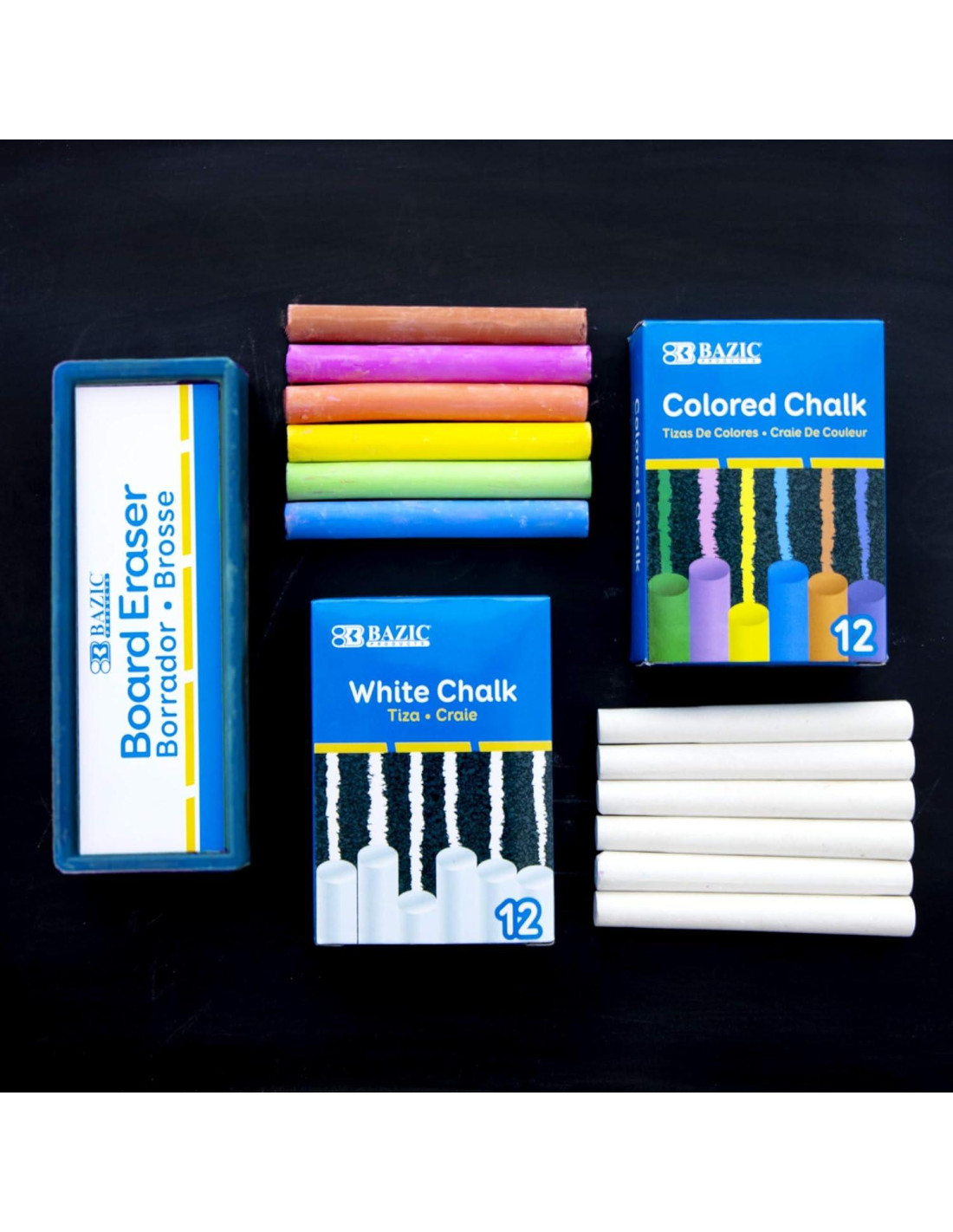 - Conjunto de 12 Tizas de Color y 12 Blancas con Borrador BAZIC