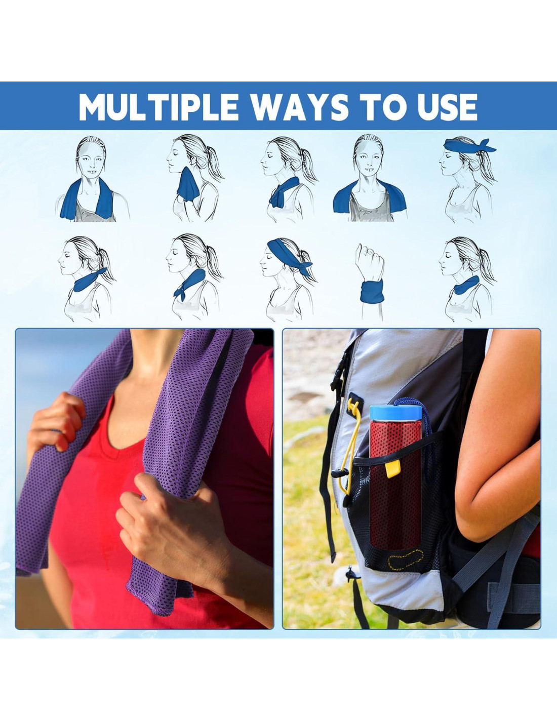 - Conjunto Funcional y Colorido: este conjunto de toallas de enfriamiento deportivas está disponible en un espectro de colores exquisitos, incluyendo azul claro, azul zafiro, rojo rosa, rojo brillante, gris claro, gris oscuro, rosa, púrpura y naranja; Estas toallas satisfacen sus necesidades