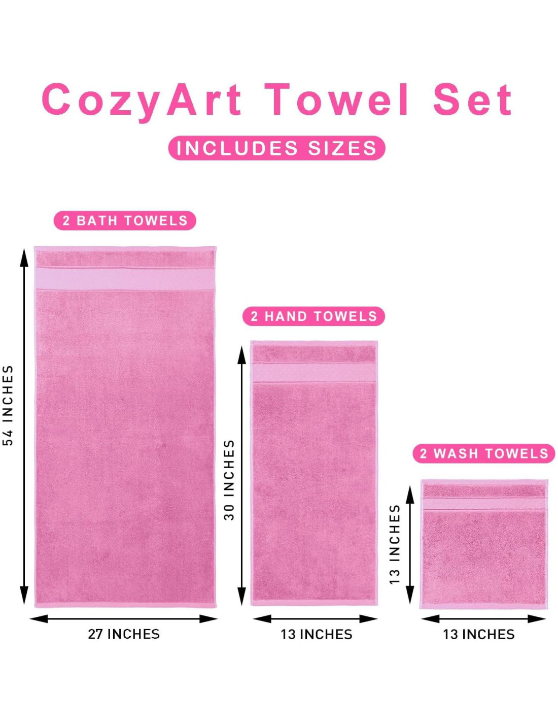 - El Juego de Toallas Incluye: 6 Piezas de Toallas. 2 Toallas de Baño (68.58 x 137.16 cm), 2 Toallas de Mano (33.02 x 76.2 cm) y 2 Paños de Lavado (33.02 x 33.02 cm). Este juego de toallas de algodón puro viene en una variedad de hermosos colores para complementar cualquier hogar, dormitorio o baño de hotel.