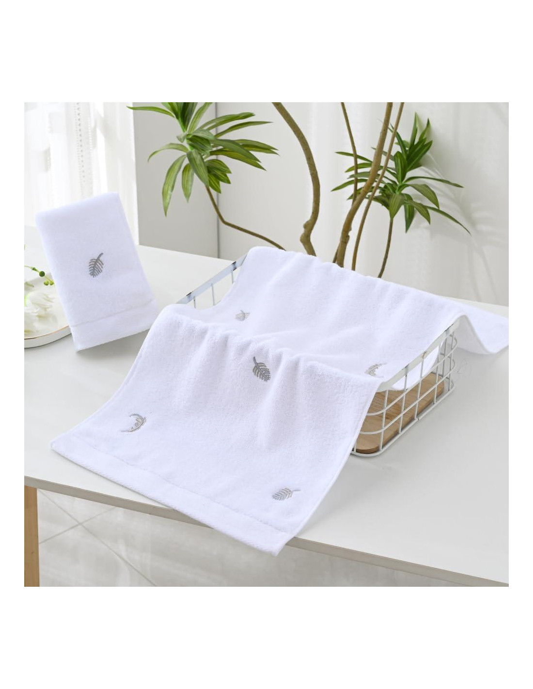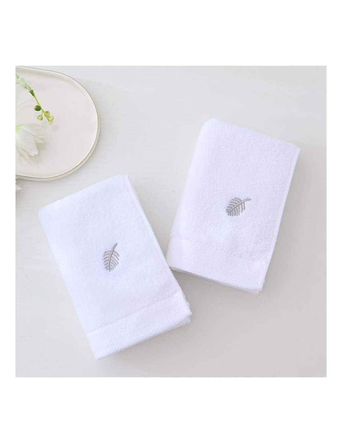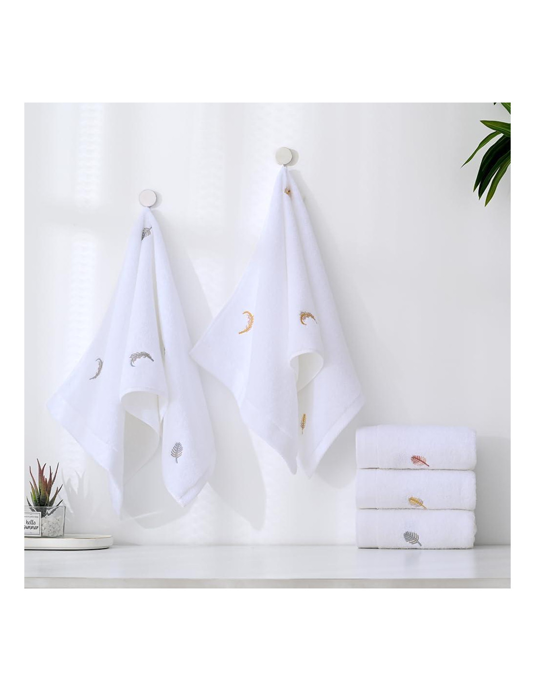 - El conjunto incluye 2 toallas de mano lujosas bordadas con plumas, tejidas con 100% algodón premium, midiendo 33 x 74 cm