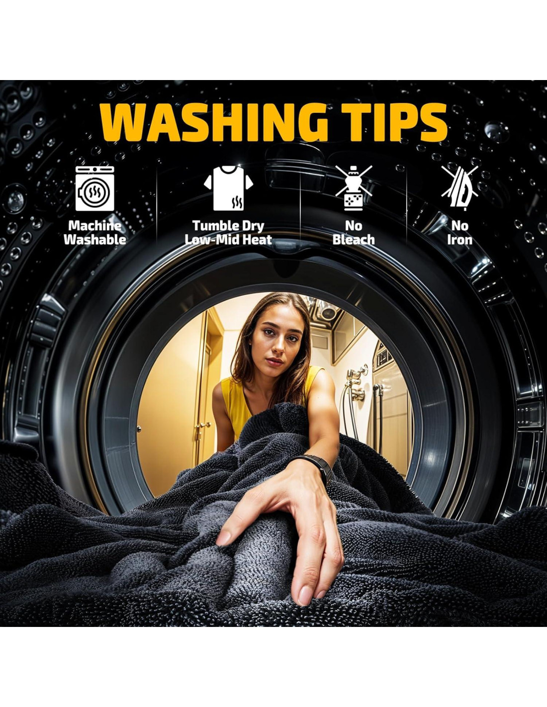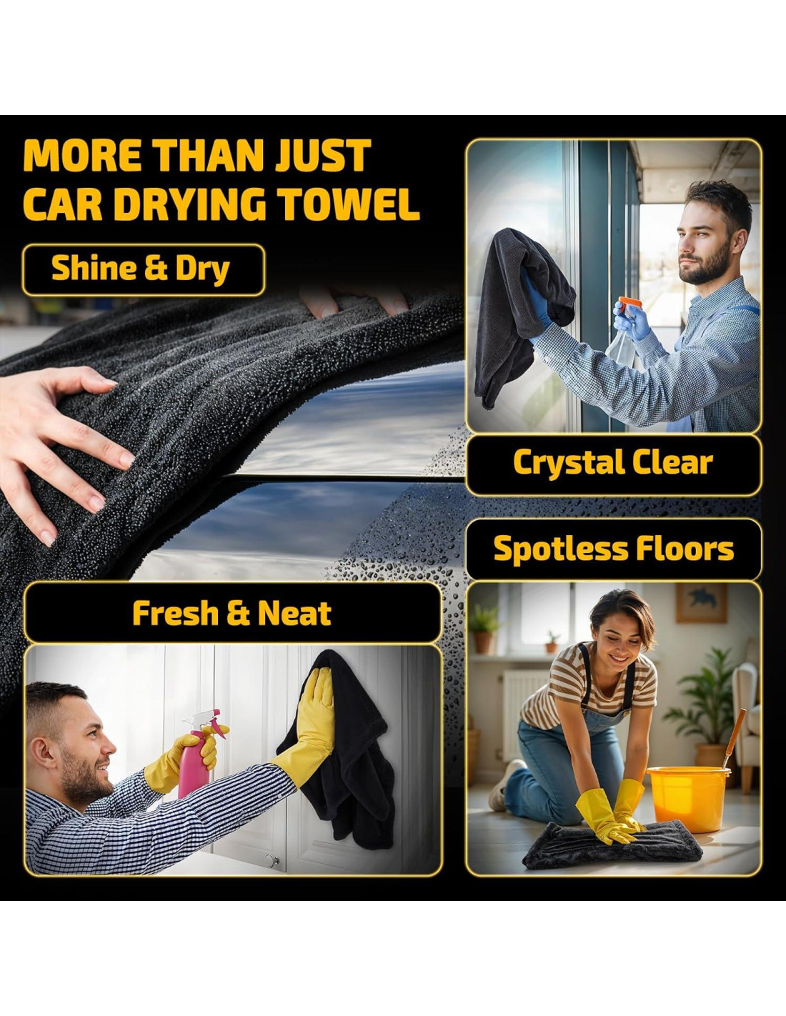 - Secado Sin Rayas y Sin Manchas: Con la avanzada microfibra de 1200 GSM y tecnología de bucle retorcido de SMINDER, disfrutarás de un acabado impecable cada vez. Con solo un pase, tu auto estará 100% seco, sin rayas y sin manchas de agua. Las toallas absorben hasta un galón entero de agua, lo que las hace perfectas para un secado eficiente y de alto rendimiento.