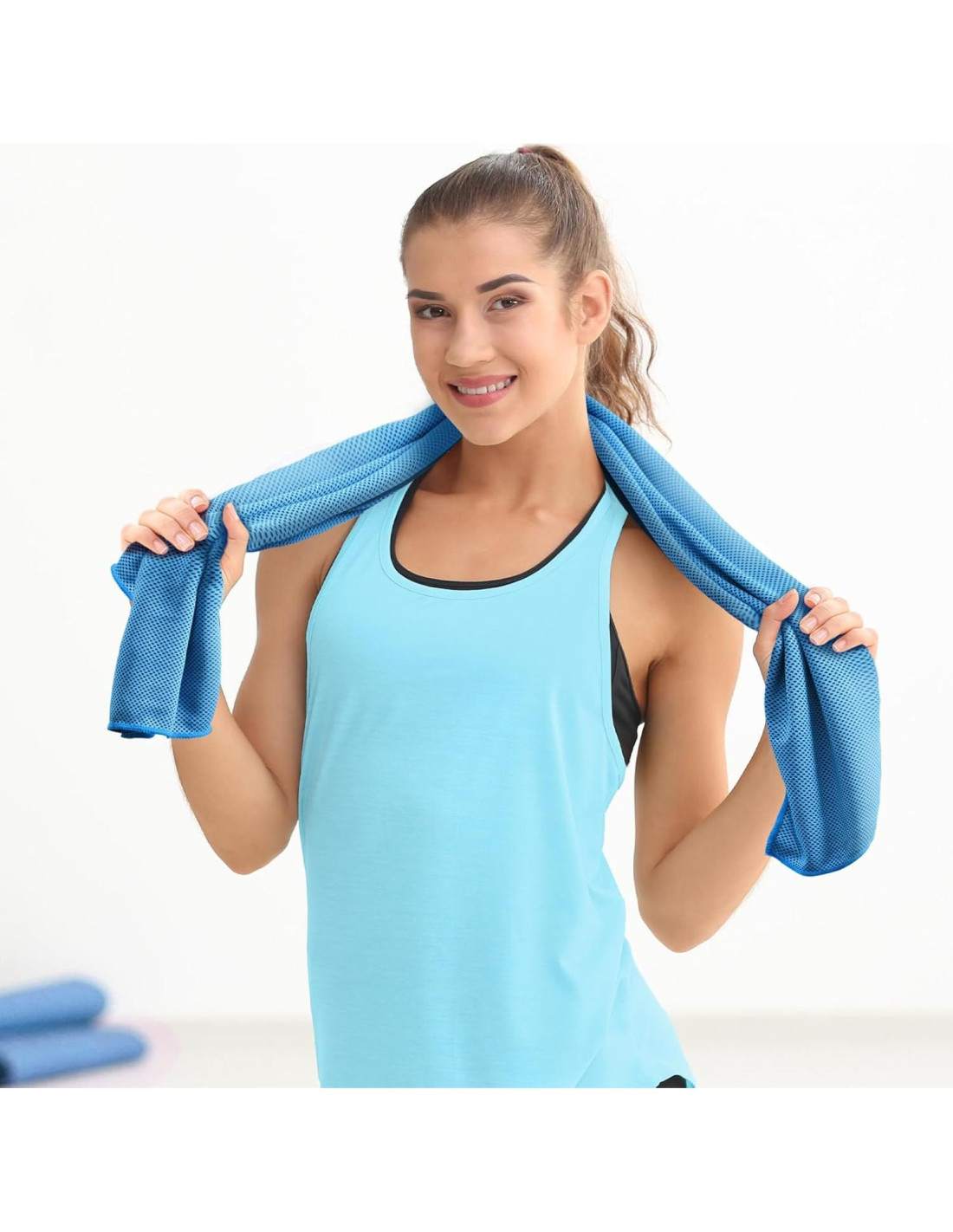- MULTIUSO: Las toallas enfriadoras se pueden usar como toallas enfriadoras para cuello y cara, una toalla deportiva, y se pueden usar en la cabeza, cuello y como accesorios para el cuerpo. Suministros frescos para acampar, accesorios para el gimnasio, accesorios para correr, necesidades de senderismo para mujeres.