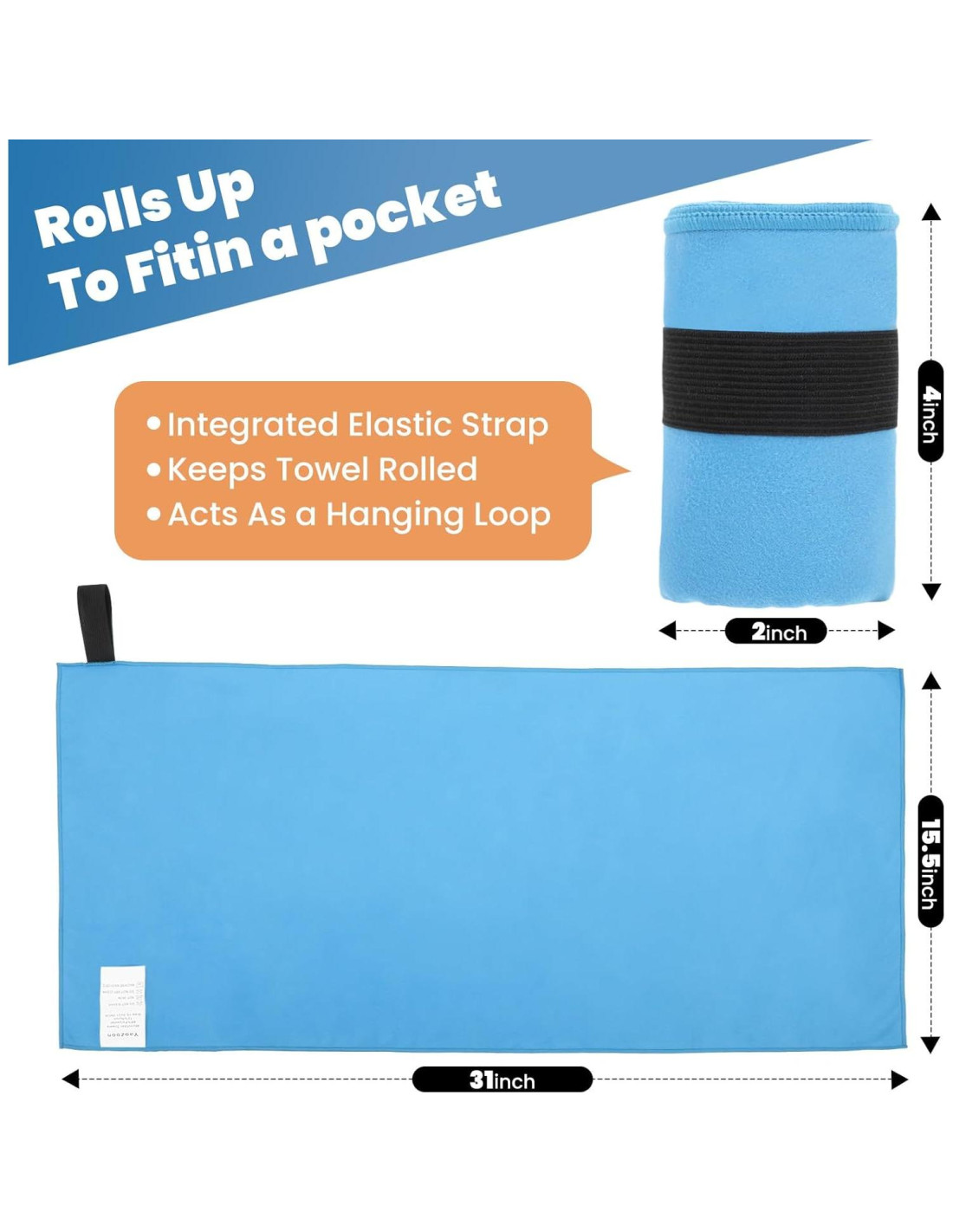 - Diseño de Correa Elástica Integrada: Puede Enrollar la Toalla para un Almacenamiento Fácil en Bolsillos, o Actuar como un Asa para Secar