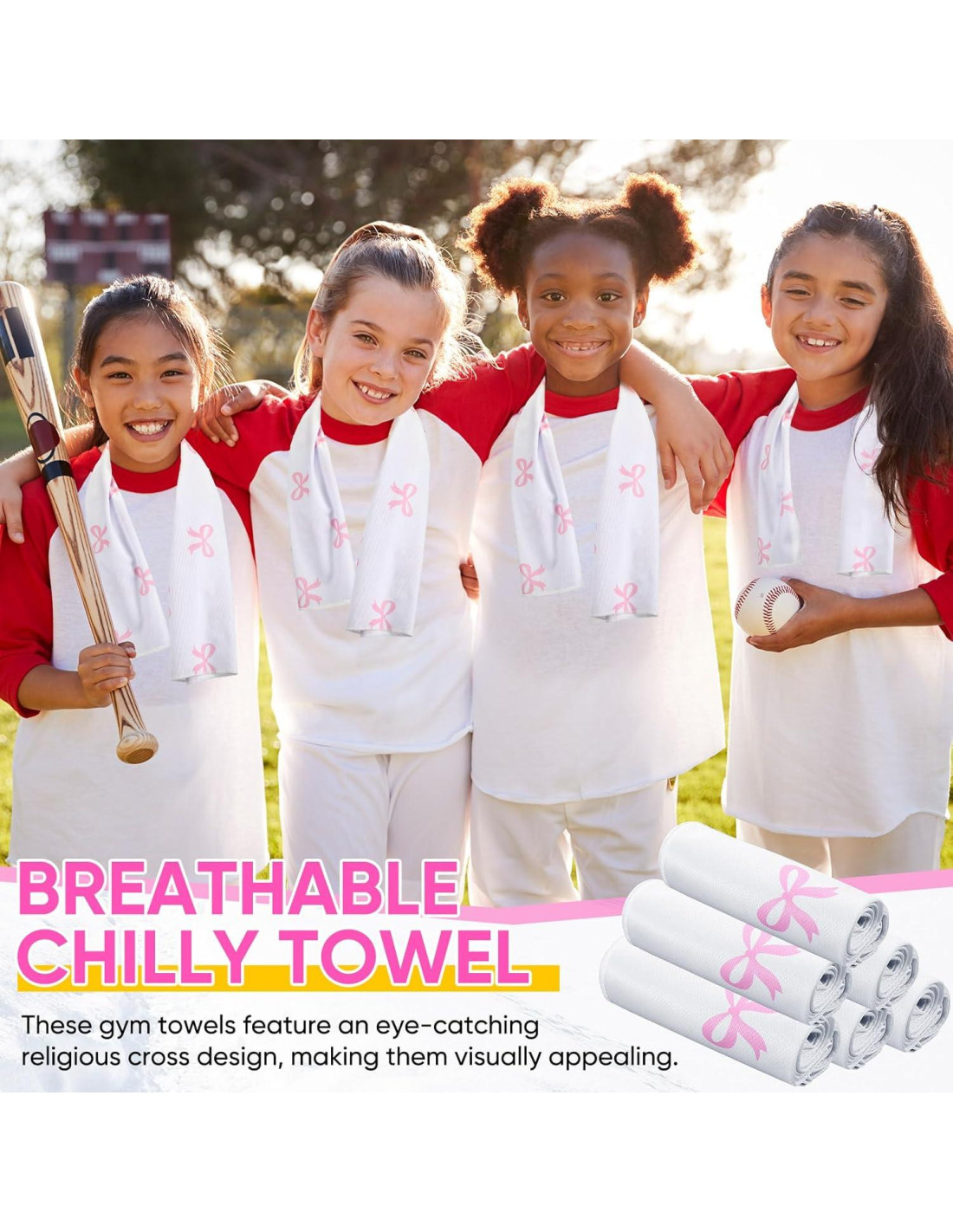 - Diseño Adorable: esta toalla de enfriamiento con lazo no solo es práctica, sino que también añade un toque de moda a ti; El lazo impreso simboliza fe y creencia; Con nuestra toalla de enfriamiento con lazo rosa diseñada de manera única, añade un toque de diversión y deportividad a tu entrenamiento o juego de béisbol, y mejora tu experiencia general
