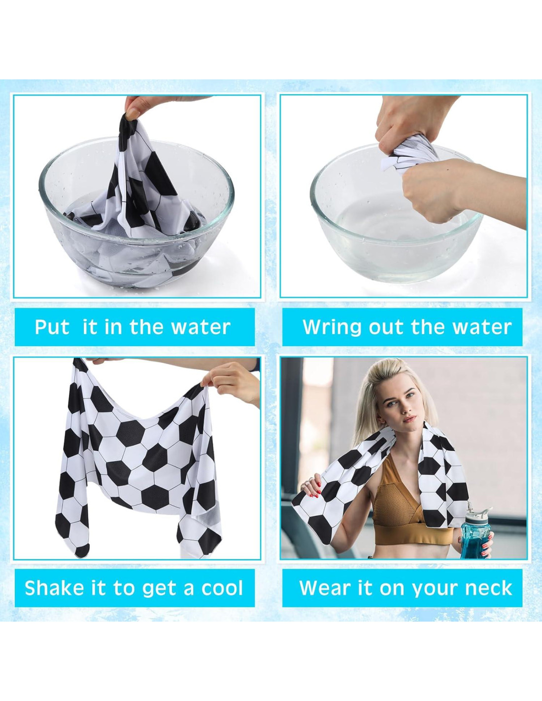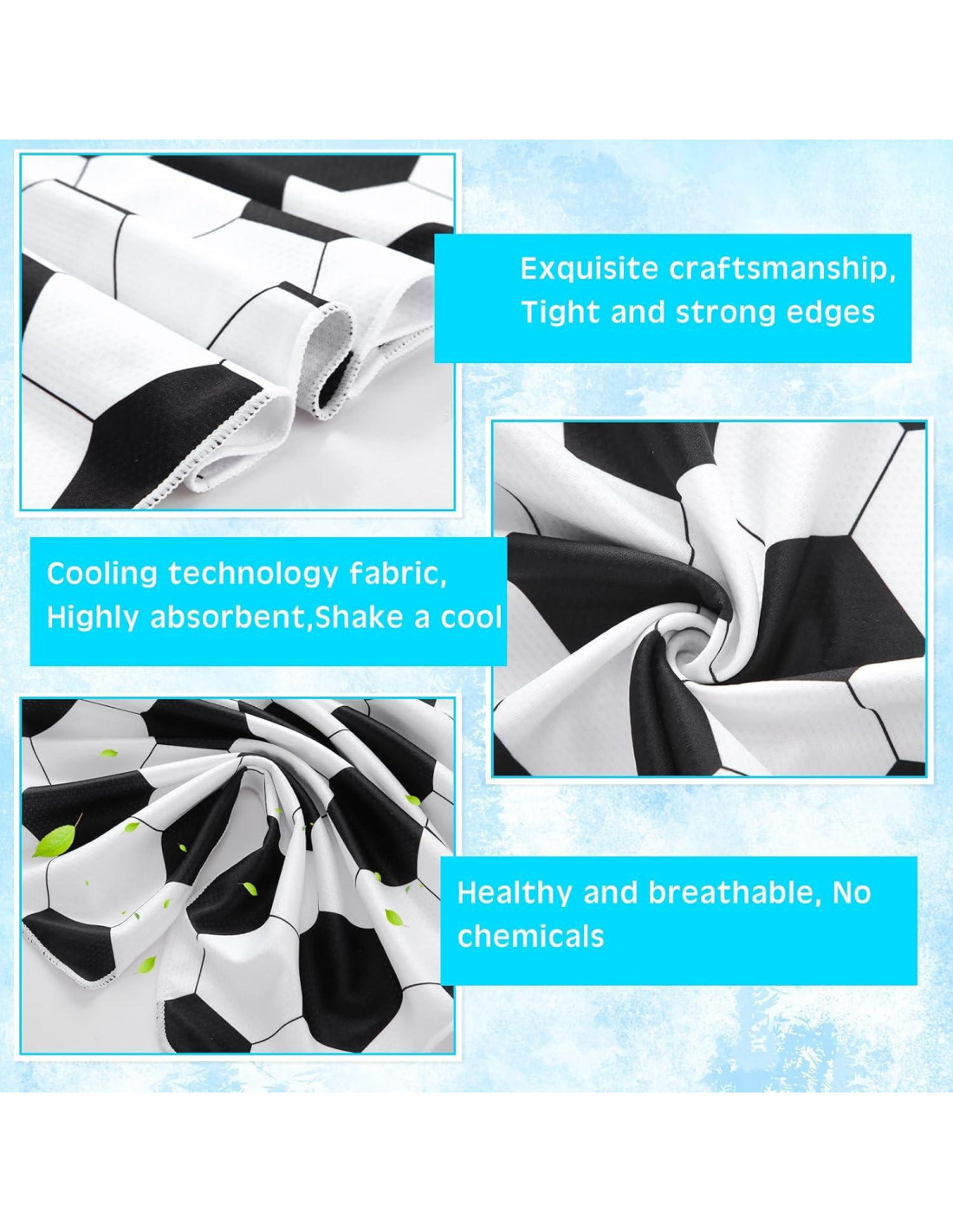 - Diseño Temático de Fútbol: impresa con un fresco patrón de fútbol, nuestras toallas enfriadoras para clima cálido atienden a todos los entusiastas de los deportes de fútbol; Agregue un toque de diversión y deportividad a su rutina de ejercicio o juego de fútbol y mejore su experiencia general con nuestras toallas enfriadoras de fútbol diseñadas de manera única
