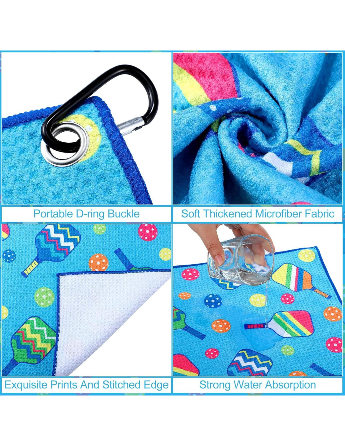 - Calidad para Máxima Absorción: hechas de material de microfibra premium, estas toallas deportivas no solo son suaves y de secado rápido, sino también altamente absorbentes, para secar dinks y sudor en una cancha resbaladiza; Ligeras y duraderas, fáciles de limpiar, haciéndote amarlas cada vez que juegas
