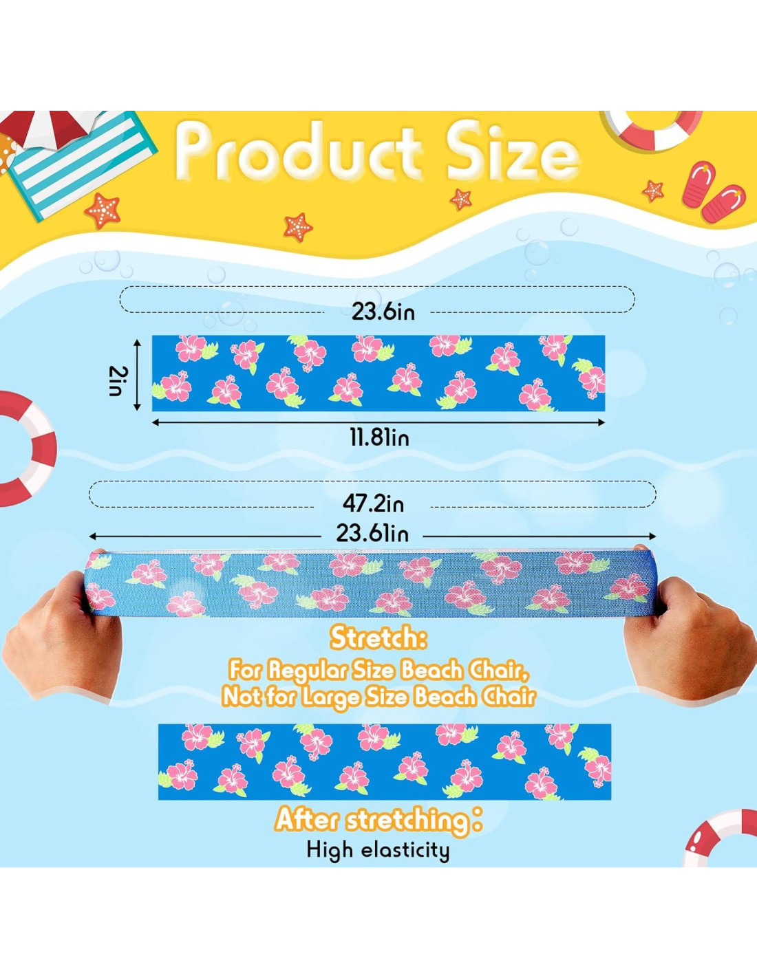 - Ligero y Portátil: estos soportes de toalla para sillas de piscina miden aproximadamente 30 x 5 cm (11.81 x 1.97 pulgadas), son elásticos, puedes estirarlos hasta 60 cm (23.6 pulgadas) de largo, se ajustan a la mayoría de los tamaños de sillas de playa, y son ligeros y fáciles de llevar, por lo que caben fácilmente en tu equipaje sin ocupar espacio o peso