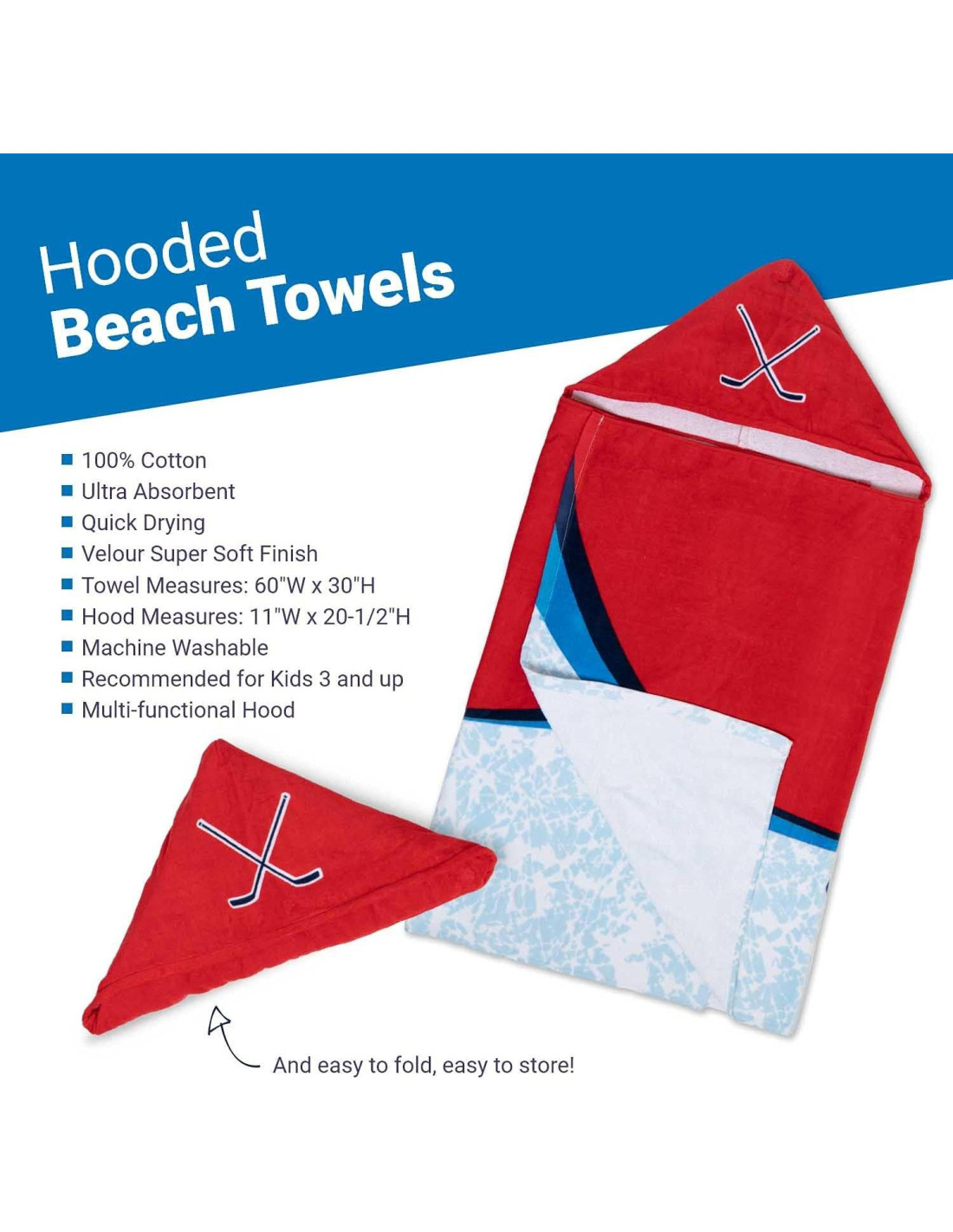 - DIVERTIDO Y VERSÁTIL: Ya sea que estés en la playa, calentándote en la pista de hielo o viendo un partido de hockey desde las gradas, mantente cómodo y haz una declaración mientras usas tu toalla de playa con capucha llamativa. Con divertidos diseños coloridos que tanto a niños como a padres les encantarán, esta cómoda y súper absorbente toalla de playa es ideal para el hogar, para llevar al campo o para relajarse en la piscina. Esta versátil toalla de playa con capucha se puede usar como bata de baño o como una capa protectora para el asiento de tu auto después de nadar.