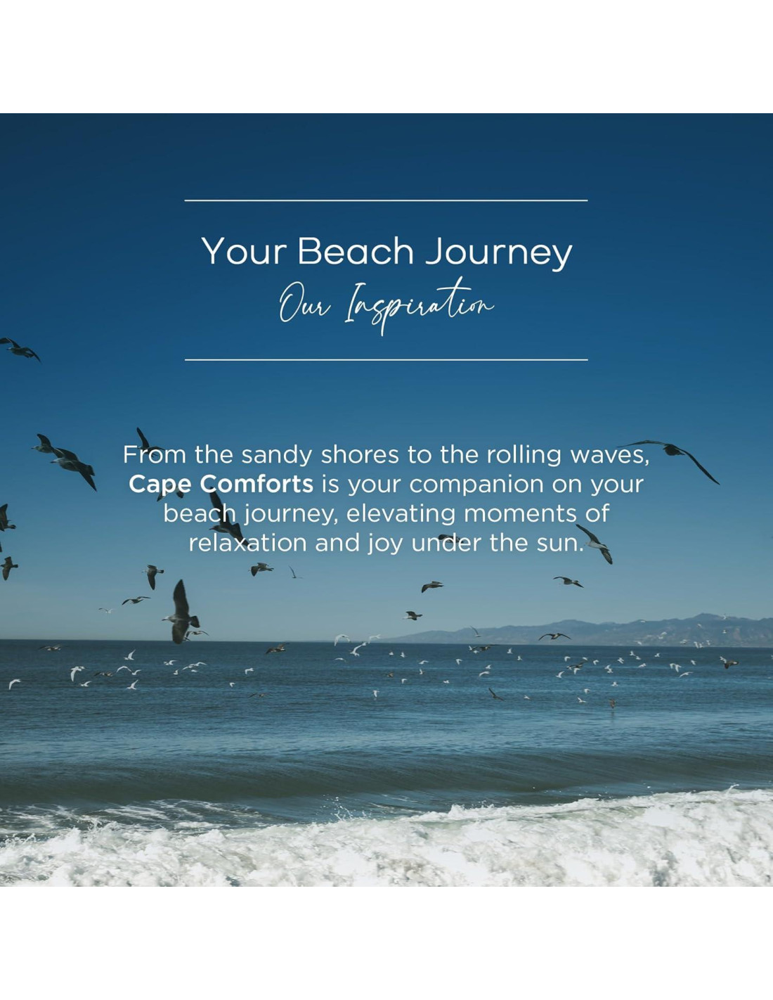 - Tu Aventura en la Playa, Nuestra Inspiración: Desde las playas de arena hasta las olas en movimiento, Cape Comforts es más que una marca - es un compañero en tu viaje a la playa, elevando momentos de relajación y alegría bajo el sol.