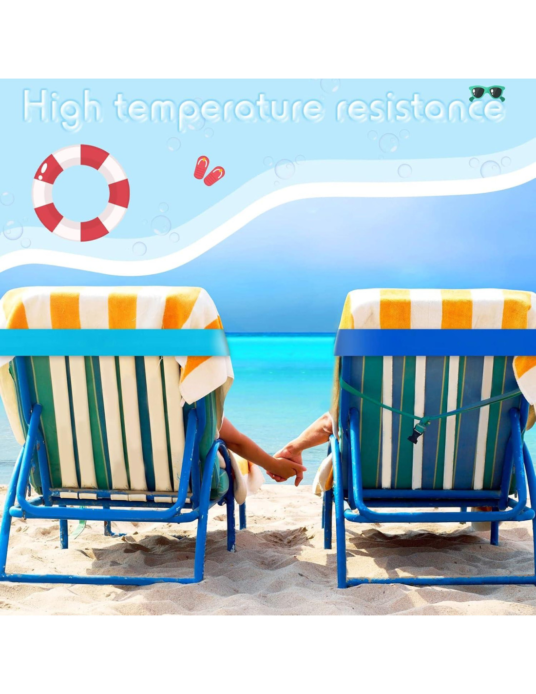 - Material Elástico: los sujetadores de toallas de playa están hechos de materiales de goma y poliéster, que son resistentes a la flexión y a romperse bajo el sol, no necesitas preocuparte de que se rompan o se oxiden repentinamente, puedes usarlos fácil y cómodamente