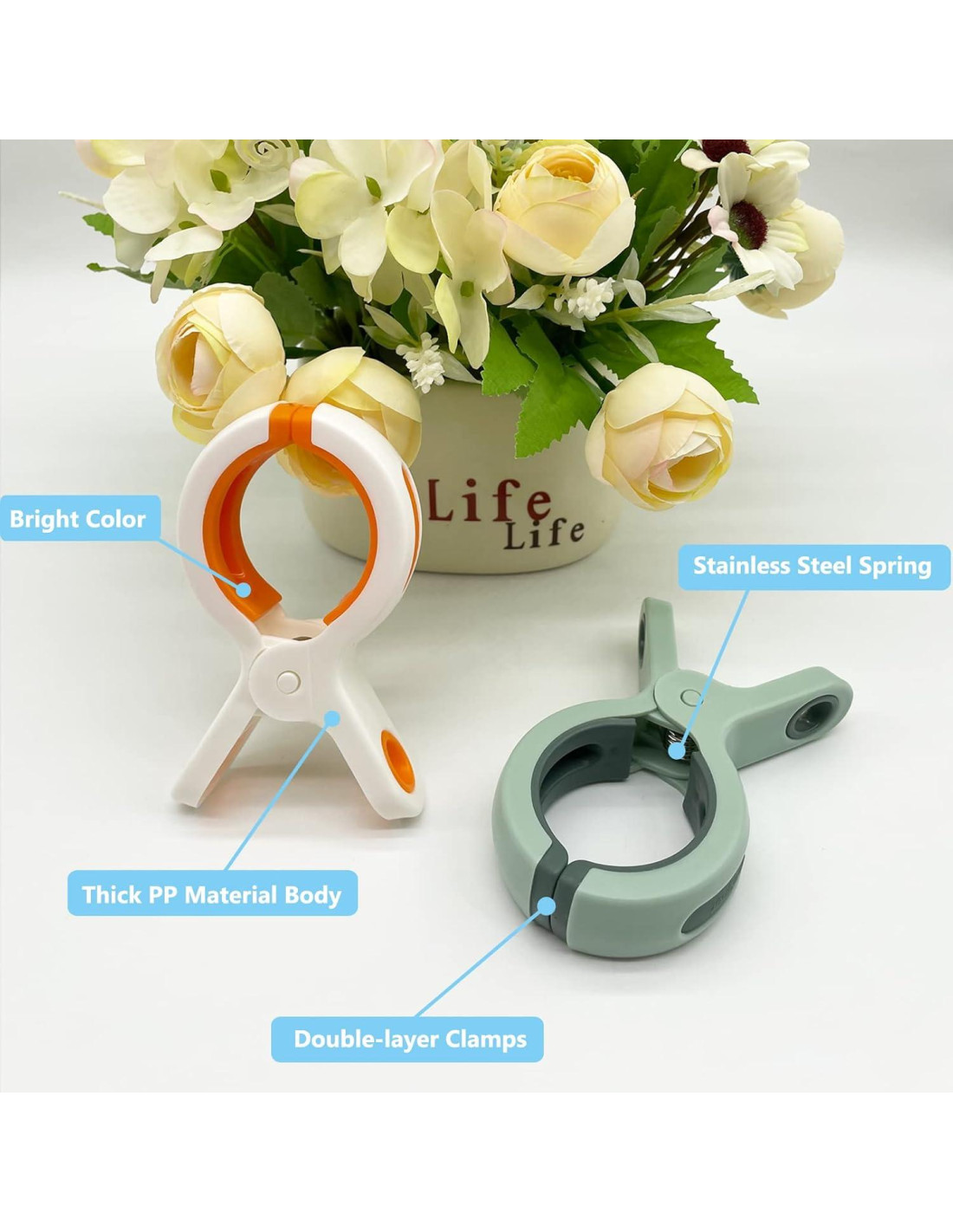 - [Multifuncional]: Nuestros clips de playa no solo pueden ayudar a asegurar tus toallas de playa firmemente en tus sillas, evitando que tus toallas de playa sean sopladas por el viento, o caigan sobre la arena, sino que también pueden ser utilizados como clips para papas, clips para bocadillos, clips para fotos, clips para telas, clips para cubiertas de piscina, clips para colchas, clips para lavandería para colgar toallas, calcetines, ropa, etc.