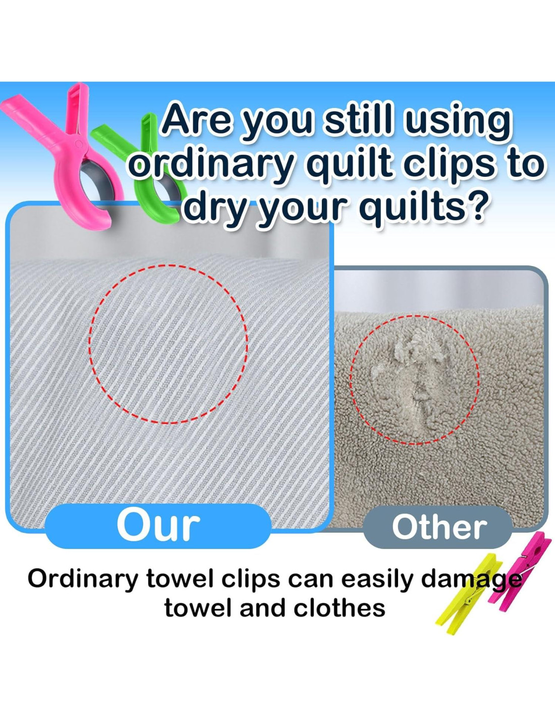 - Agarre Suave: Estos clips para sillas de playa evitan la indentación y las arrugas de las toallas para un aspecto impecable. Los clips para sillas de playa para toallas ofrecen un agarre suave pero firme, protegiendo artículos delicados de las ráfagas de viento mientras aseguran una operación fácil con una sola mano.