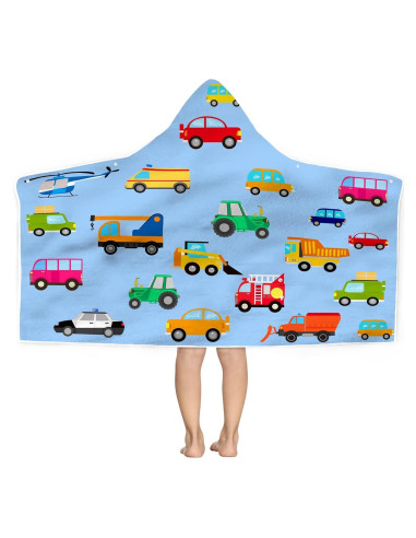 - LIBRE DE ARENA Y ESTILOSA - La arena desaparecerá cuando sacudas esta toalla. No te preocupes por llevar arena a casa; La linda toalla con capucha de coche azul está impresa de un solo lado con un diseño elegante, eres absolutamente único en la playa.