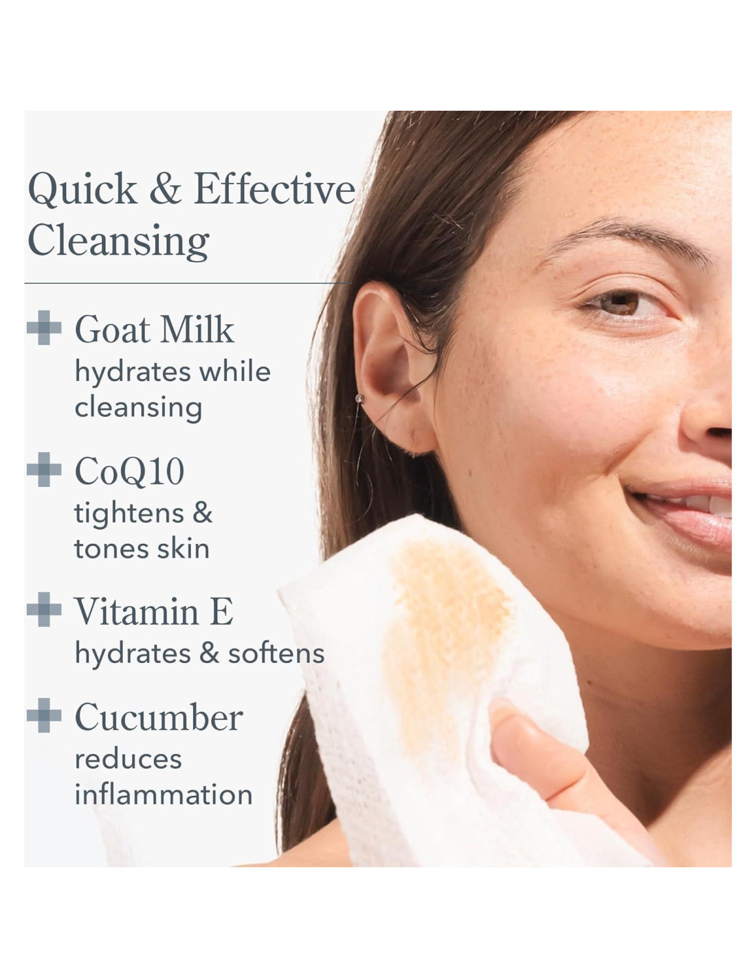 - POR QUÉ FUNCIONA - Nuestras toallitas limpian profundamente y eliminan el maquillaje sin alterar tu microbioma. El aloe y la vitamina E son poderosos antioxidantes que ayudan a renovar la piel y el CoQ10 deja la piel sintiéndose nutrida con un ligero efecto de tensado.