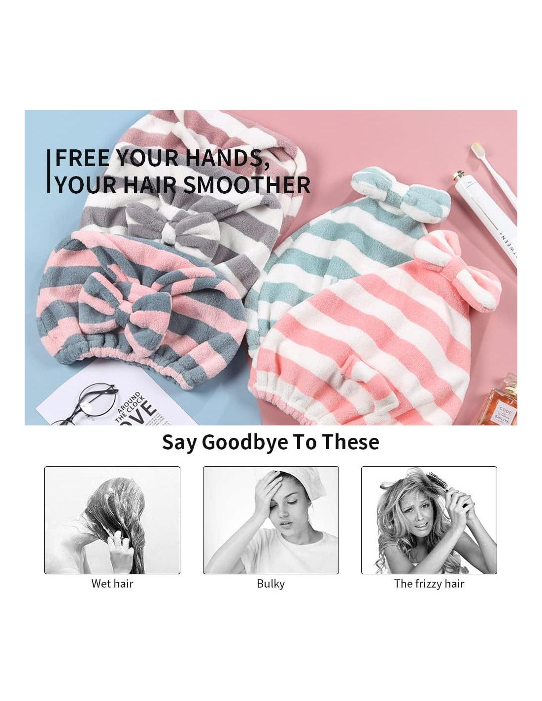 - El paquete incluye: 1 toalla de secado de microfibra con lazo rosa + 1 gorro de toalla de cabello lindo con lazo verde
