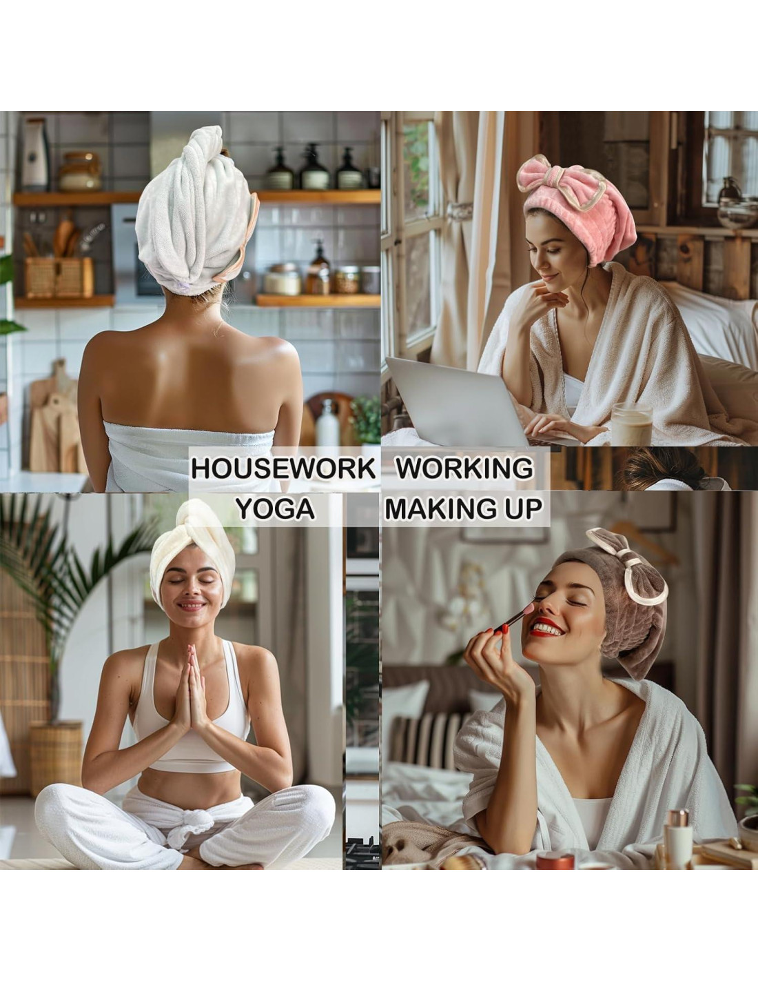- DISEÑO DE GORRO DE TOALLA DE SECADO PARA CABELLO CON LAZO ADORABLE - Bonita toalla de microfibra para el cabello con borde dorado en forma de lazo, adecuada para cada mujer con un corazón de niña.
