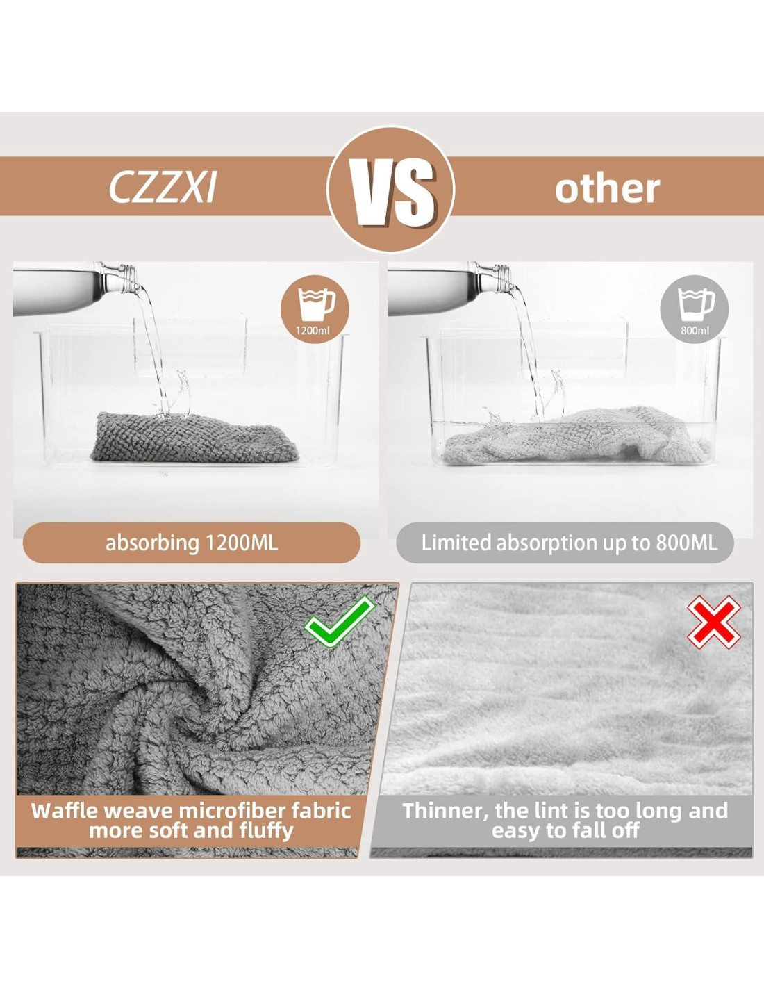 - Toalla de microfibra super absorbente - La toalla para el cabello CZZXI está hecha de microfibra y absorbe más de 10 veces su peso en agua, lo que la hace adecuada para un secado rápido con secador.