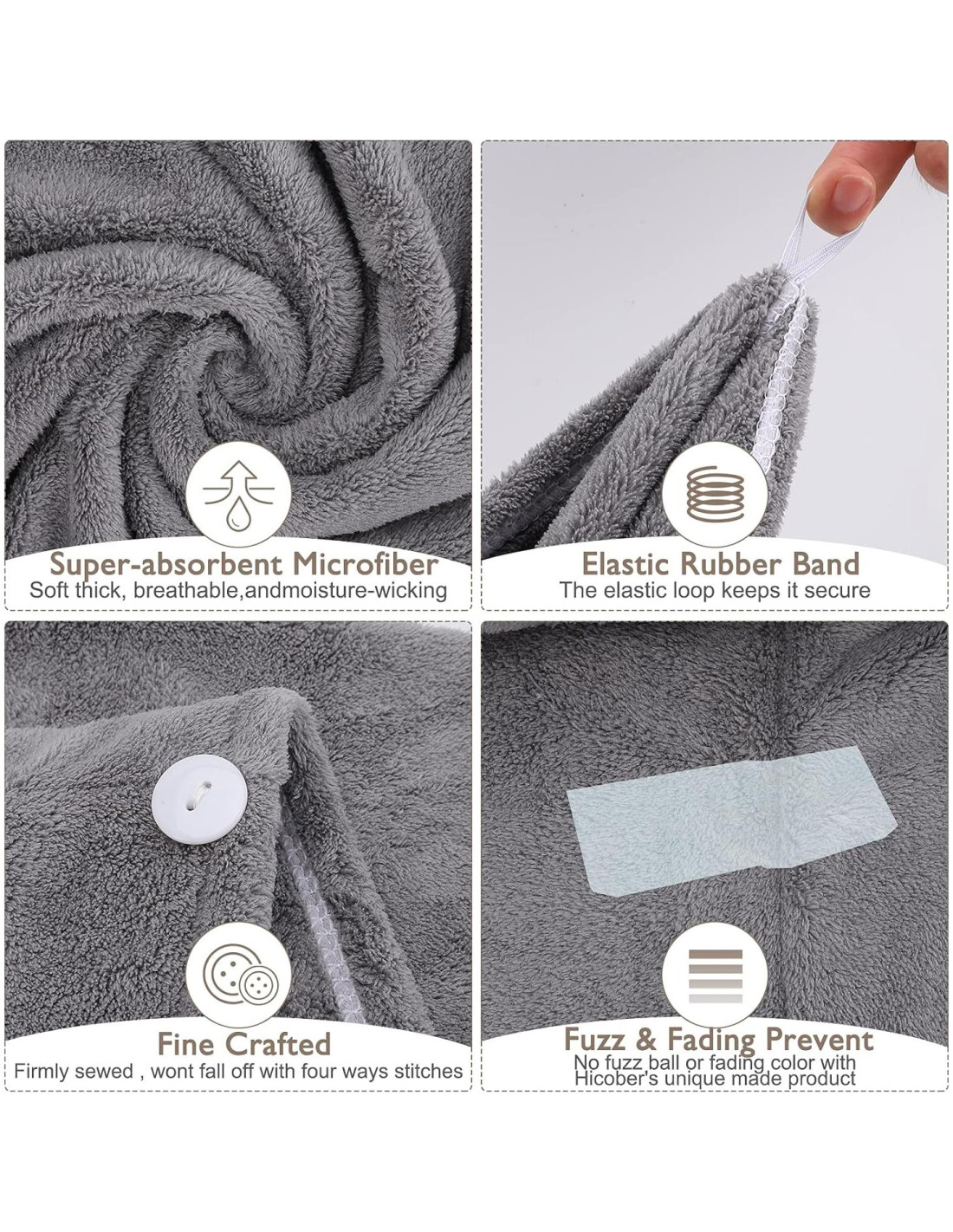- Toalla de Cabello de Microfibra de Secado Rápido: Hecha de tela de microfibra absorbente, más rápida, ligera y transpirable para el cabello seco. La toalla de cabello de microfibra se seca rápidamente de una manera más saludable sin dañar el cabello con un secador.