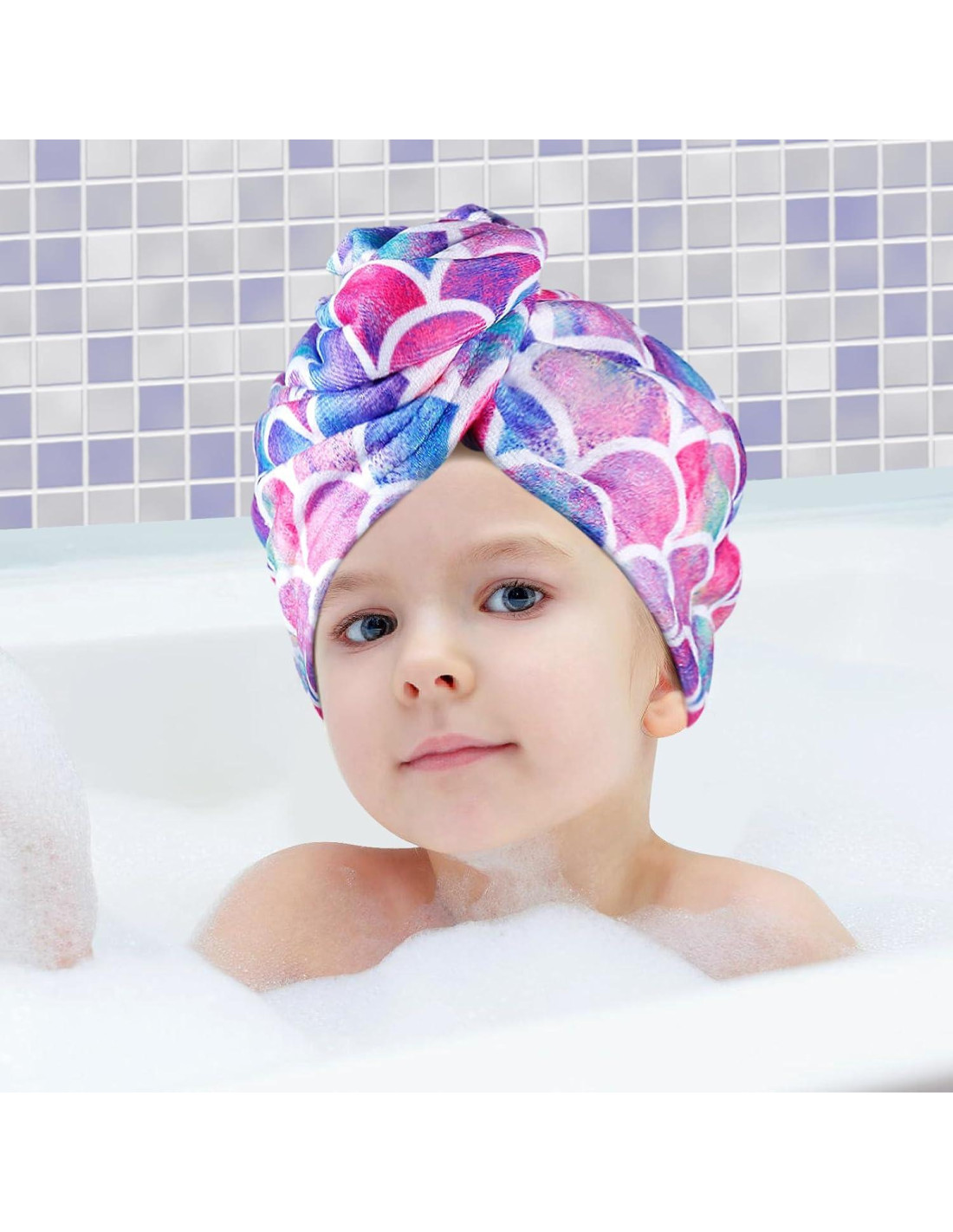 - Toalla para el Cabello Estilosa para Niños: Nuestra toalla para secar el cabello está hecha de tela de microfibra premium, lo que le da una gran absorción de agua. El agua en tu cabello se absorberá rápidamente cuando uses la toalla para el cabello en tu cabeza después de bañarte. El novedoso patrón de Sirena es muy adecuado para las pequeñas como si hubieran entrado en un mundo de cuento de hadas.