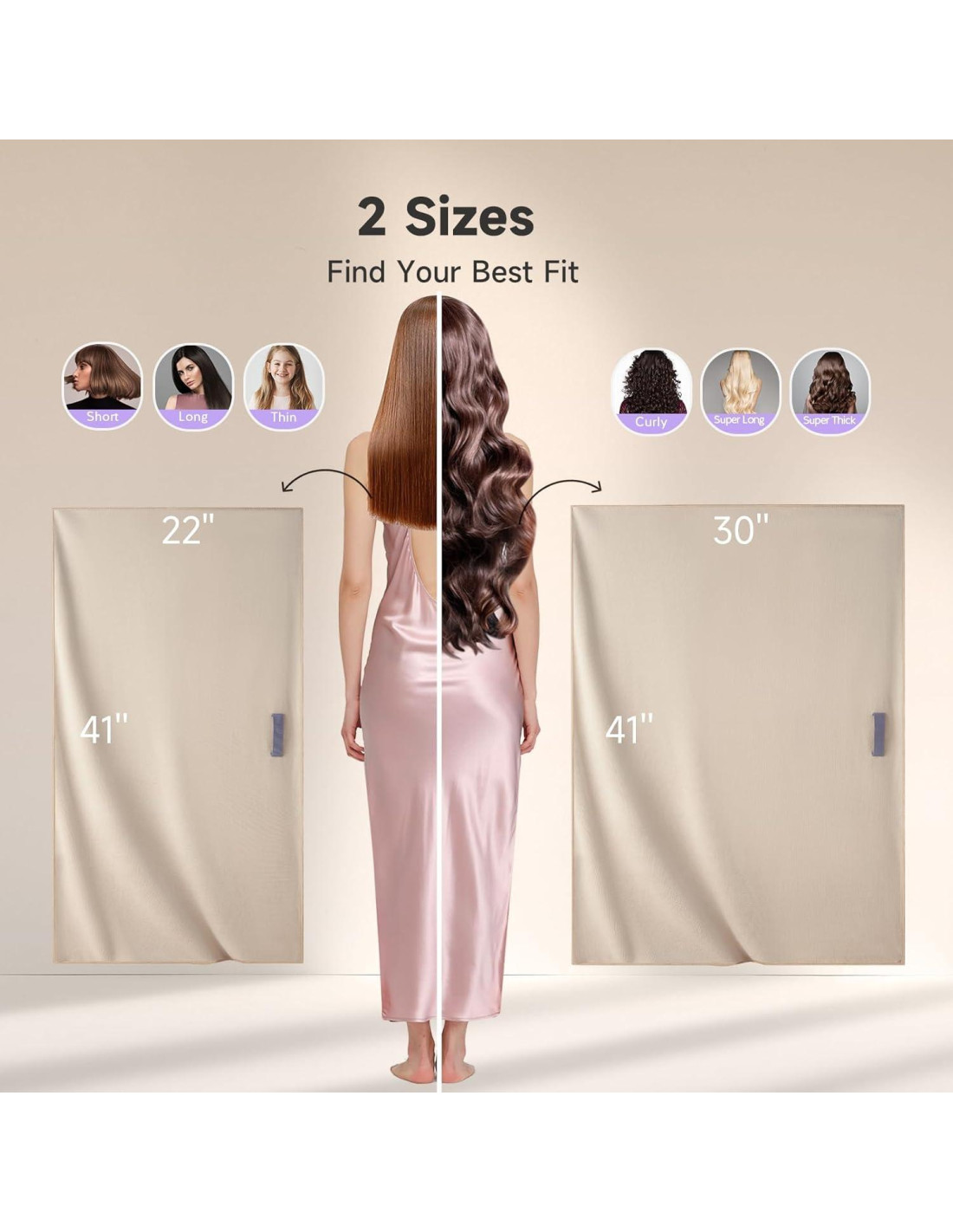 - 2 Tamaños para Diferentes Longitudes de Cabello: 104.14 cm x 76.2 cm para cabello extra largo, 104.14 cm x 55.88 cm para cabello de longitud hasta los hombros. Ambas están destinadas a cubrir completamente el cabello ultra grueso y también son amigables para cabezas grandes. Adecuadas para todos los tipos de cabello: fino, grueso, voluminoso, rizado, ondulado, lacio. La toalla de microfibra para cabello de Umisleep es grande pero no voluminosa, agradable para llevar al gimnasio, viajes, spas y en cualquier lugar cuando lo necesites. Bonitos regalos para mujeres