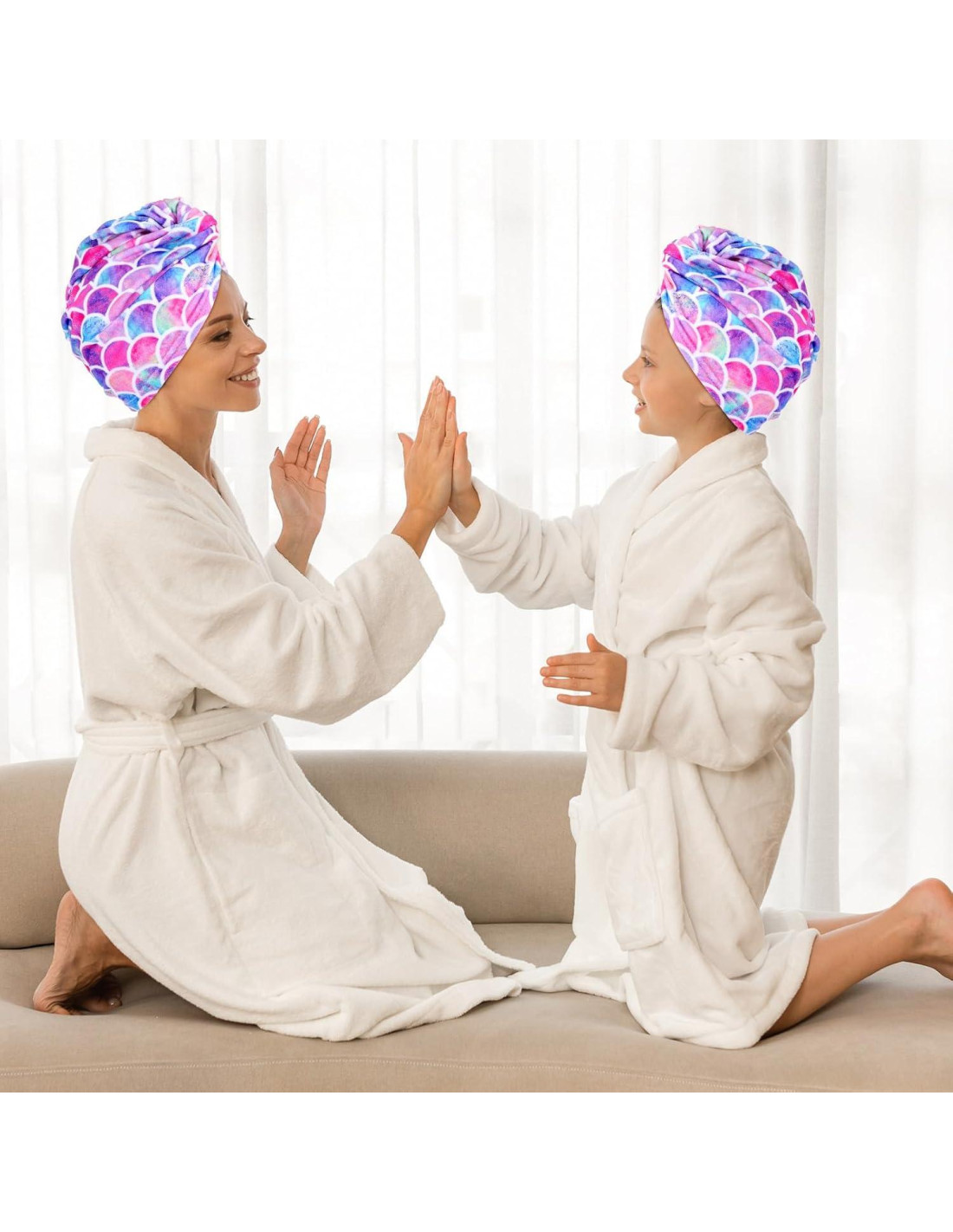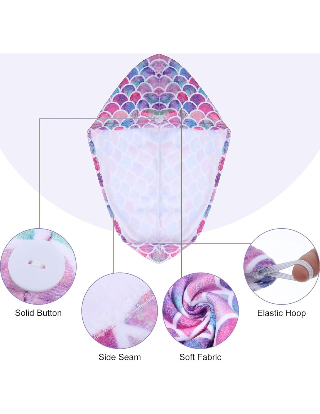 - Tamaño Adecuado: Nuestra envoltura de toalla de microfibra para el cabello mide 65 x 25 cm (25.59 x 9.84 pulgadas), lo que la hace perfecta para niños y adultos por igual. Esta envoltura de toalla para el cabello para niñas pequeñas está diseñada para ajustarse cómodamente, asegurando un ajuste seguro sin deslizamientos, mientras que el vibrante patrón de sirena añade un toque de diversión.