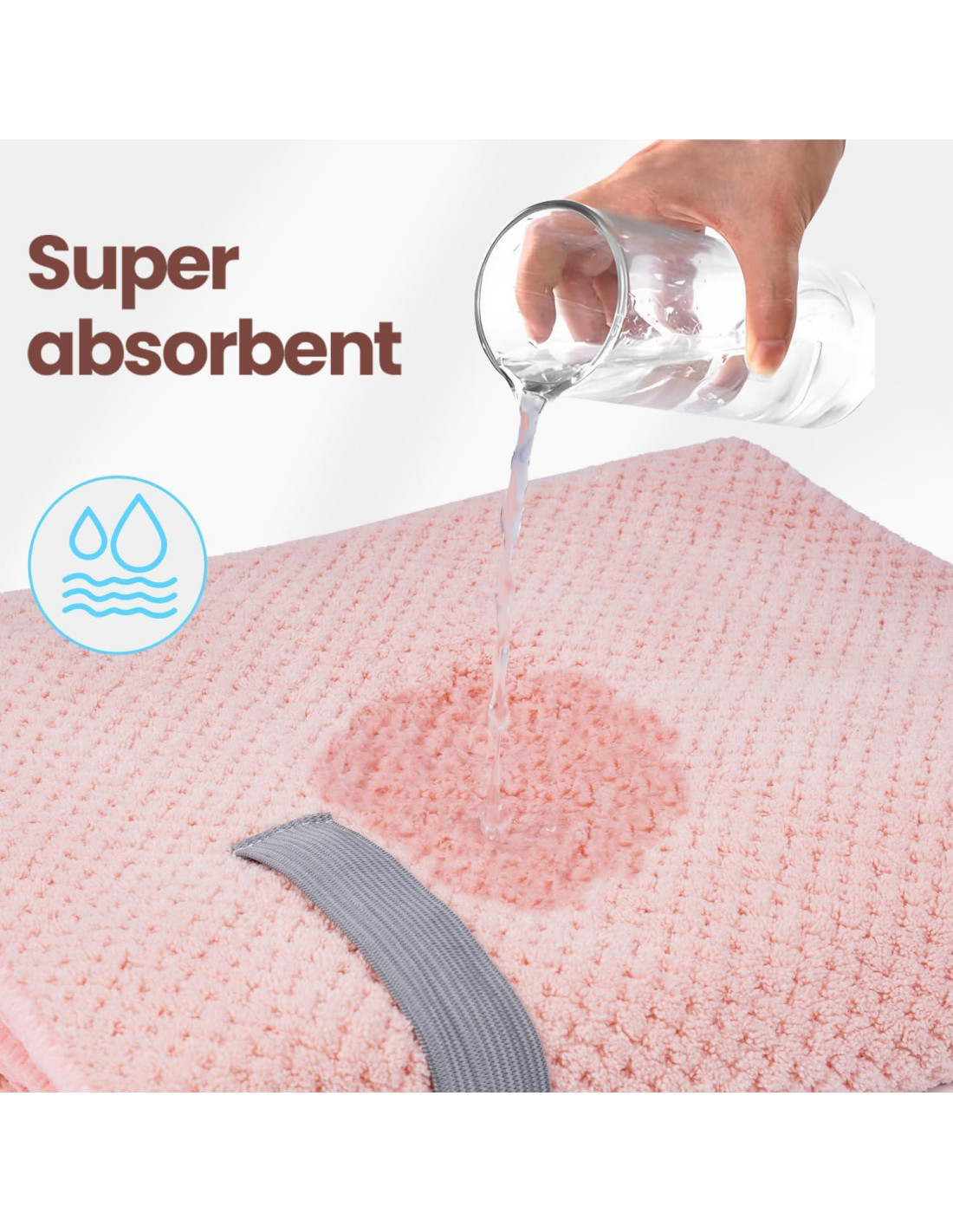 - UNA TALLA ÚNICA (102 cm x 61 cm): Esta toalla para secar el cabello es generosamente grande para acomodar cabello largo, bobs, rizos o mechones gruesos, y cuenta con una banda elástica ajustable para un ajuste personalizado y seguro. No más luchas con toallas que se deslizan, solo un secado sin esfuerzo para cada tipo de cabello.