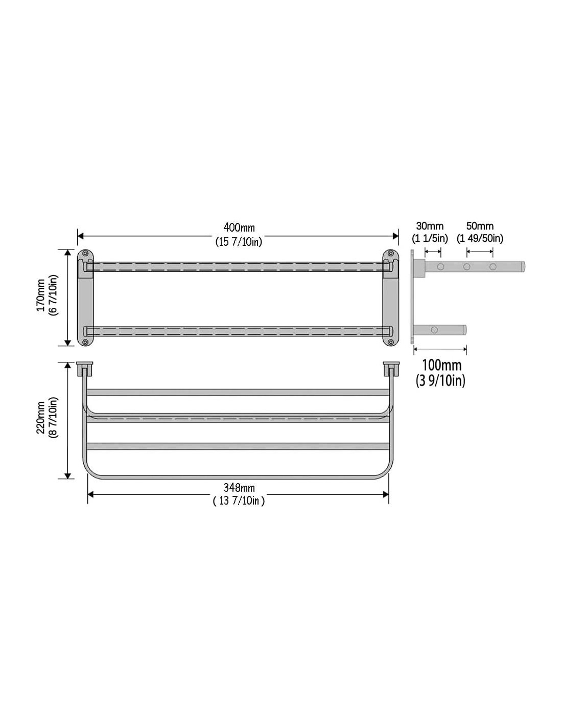 - FOLDING 90: Se puede plegar en ángulos rectos, ahorrando más espacio cuando no deseas usar el soporte para albornoces.