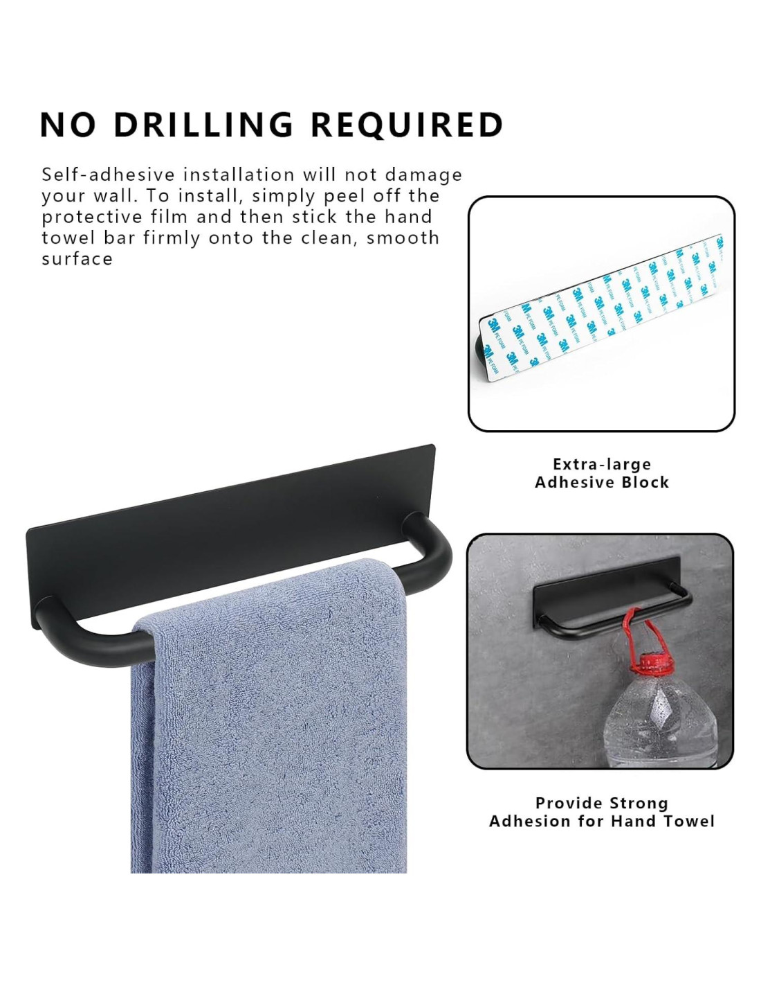 Instalación Sin Taladro: El diseño autoadhesivo permite una fácil instalación sin herramientas ni taladros. Perfecto para inquilinos o cualquier persona que desee una configuración sin complicaciones. Acero Inoxidable Duradero: Hecho de acero inoxidable 304 de alta calidad, este soporte de toalla es resistente a la corrosión y está diseñado para durar. El acabado negro elegante añade un toque de elegancia a cualquier espacio. Uso Multiusos: Ideal para baños, cocinas o cualquier espacio donde necesite un soporte de toalla confiable. Úselo para toallas de mano, toallas de cocina o incluso pequeños accesorios.