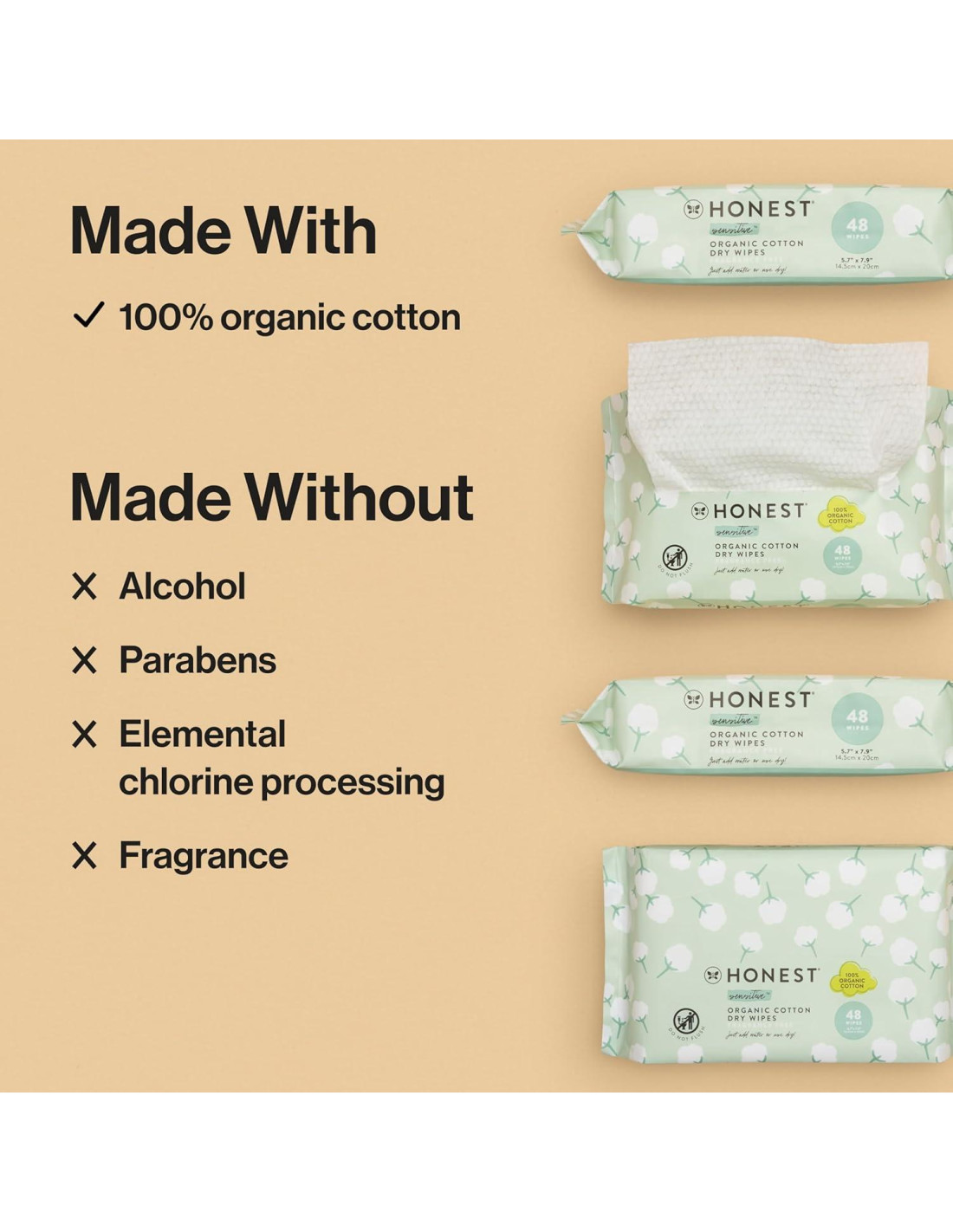 - TOALLITAS SECAS ORGÁNICAS: Hechas con algodón orgánico puro 100% de origen sostenible (y nada más), las Toallitas Secas Honest están hechas para todo y todos, incluidos los recién nacidos