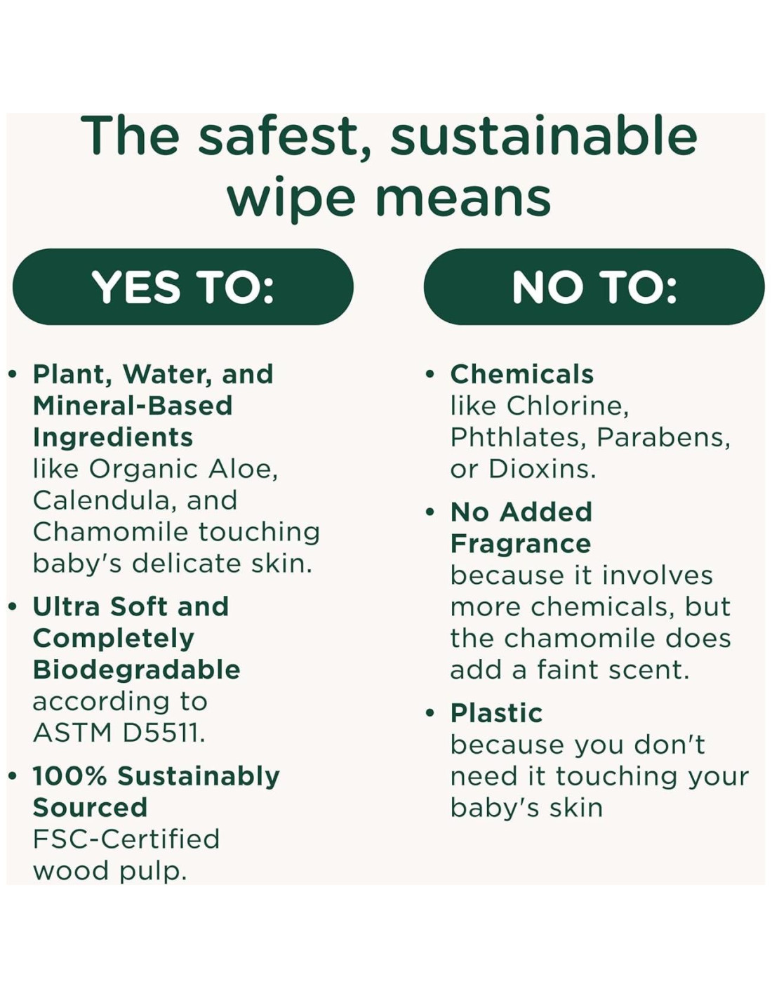- Toallitas 100% a base de agua, plantas y minerales: Nuestras toallitas EWG Verificadas son hipoalergénicas y están hechas con los ingredientes más limpios para la piel en desarrollo del bebé.