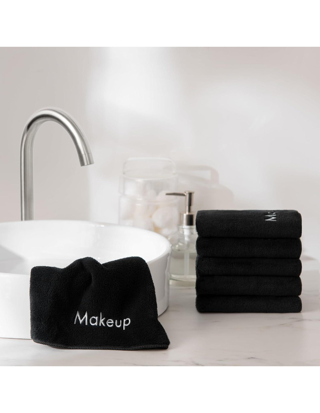 - NO ARRUINES TUS TOALLAS BLANCAS: No arruines tus toallas blancas con manchas de maquillaje - usa nuestro set de paños borradores de maquillaje de microfibra que no se verán desgastados o sucios. El encantador bordado "Maquillaje" distingue este paño removedor de maquillaje de otros linos de baño.