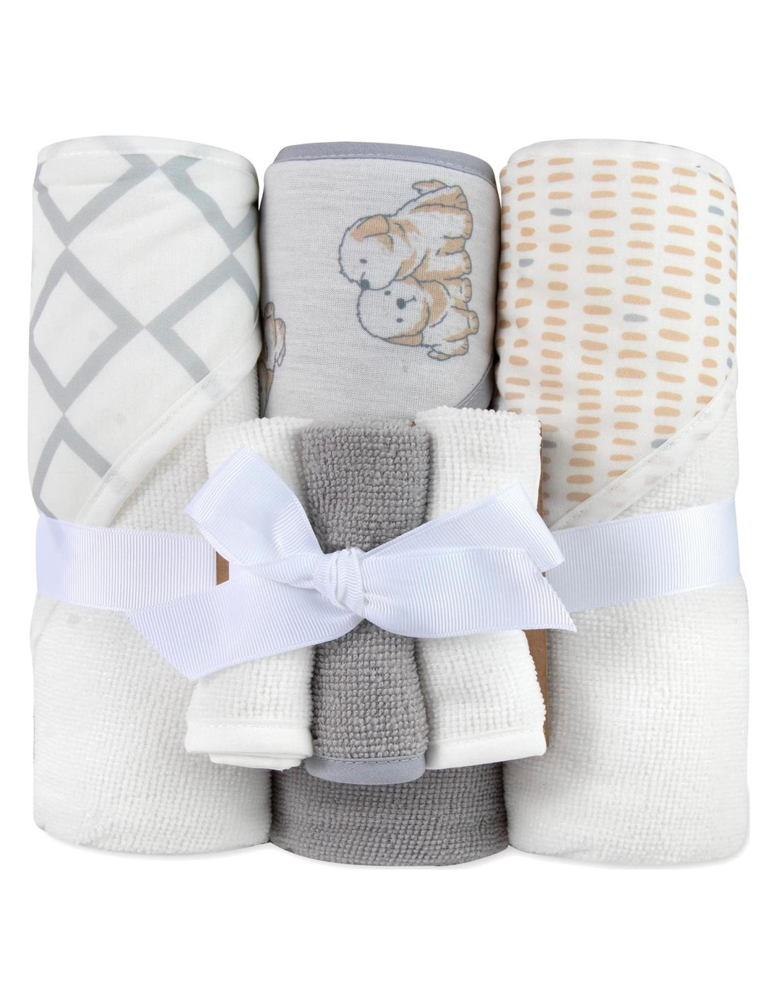 - DIMENSIONES E INSTRUCCIONES DE CUIDADO: Las toallas de baño con capucha para bebés y los paños de lavado a juego están hechas de poliéster suave para bebés. Las toallas de baño con capucha miden 76.2 cm de largo x 66 cm de ancho y cada paño de lavado mide 20.3 cm de largo x 20.3 cm de ancho. Todas las piezas son lavables a máquina, secar a baja temperatura.