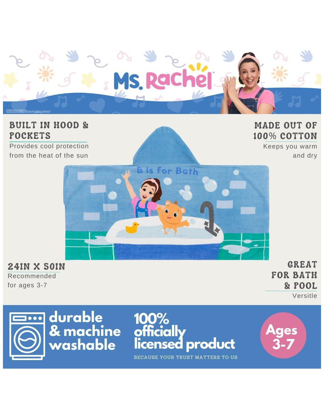 - DISEÑO DE LA SRA. RACHEL: Haz que la hora del baño sea una aventura con esta adorable toalla con capucha "Splash es Divertido" de la Sra. Rachel. Con un diseño juguetón que presenta a la Sra. Rachel y elementos divertidos de la hora del baño, esta toalla es perfecta para hacer que la hora del baño sea emocionante.