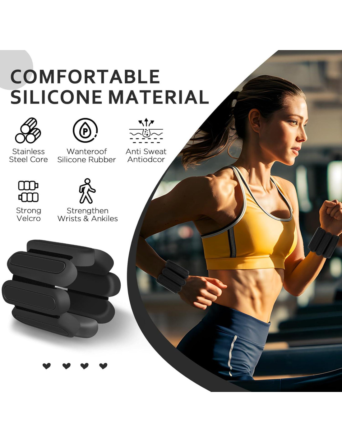 - [PESAS PARA MUÑECA] : El conjunto incluye 2 pulseras de peso de silicona ajustables, la longitud x ancho del peso de la muñeca son 30CM(11.8IN) x 7.8CM(3.1IN), 0.45 kg de peso para cada una y esta es una base de ejercicio adecuada para mujeres o ejercitadores de necesidades primarias en la vida diaria, es una elección perfecta para obtener una vida saludable.