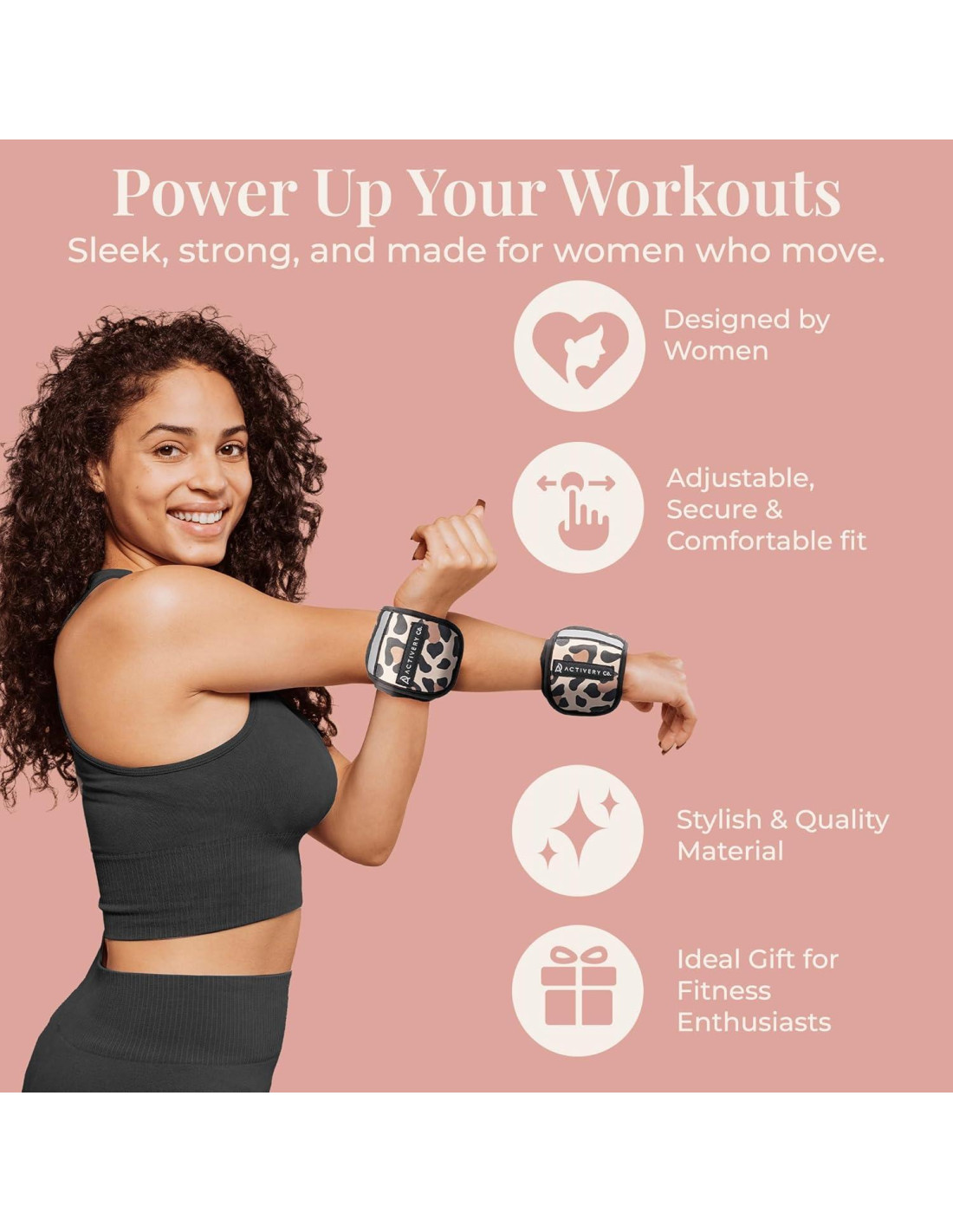 - Pesas de Muñeca y Tobillo para Mujeres - Elegantes y Fuertes: Estas pesas de muñeca y tobillo con estampado de leopardo para mujeres añaden resistencia ligera al movimiento diario, caminatas y entrenamiento de fuerza. Esculpe y tonifica tus brazos y piernas mientras te mantienes elegante y segura.