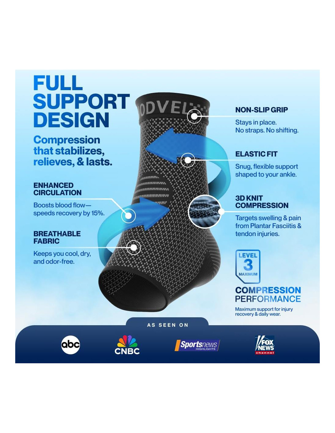 El Dr. Rod J. Turner, un Especialista en Medicina Deportiva Ortopédica de Texas, recomienda nuestra funda para el tobillo para un alivio efectivo de problemas comunes de dolor en los pies como la fascitis plantar, espolones en el talón y malestar general en los pies. Diseñada para aliviar el dolor, apoyar la recuperación y mejorar la comodidad, esta funda te ayuda a mantenerte activo y libre de dolor.