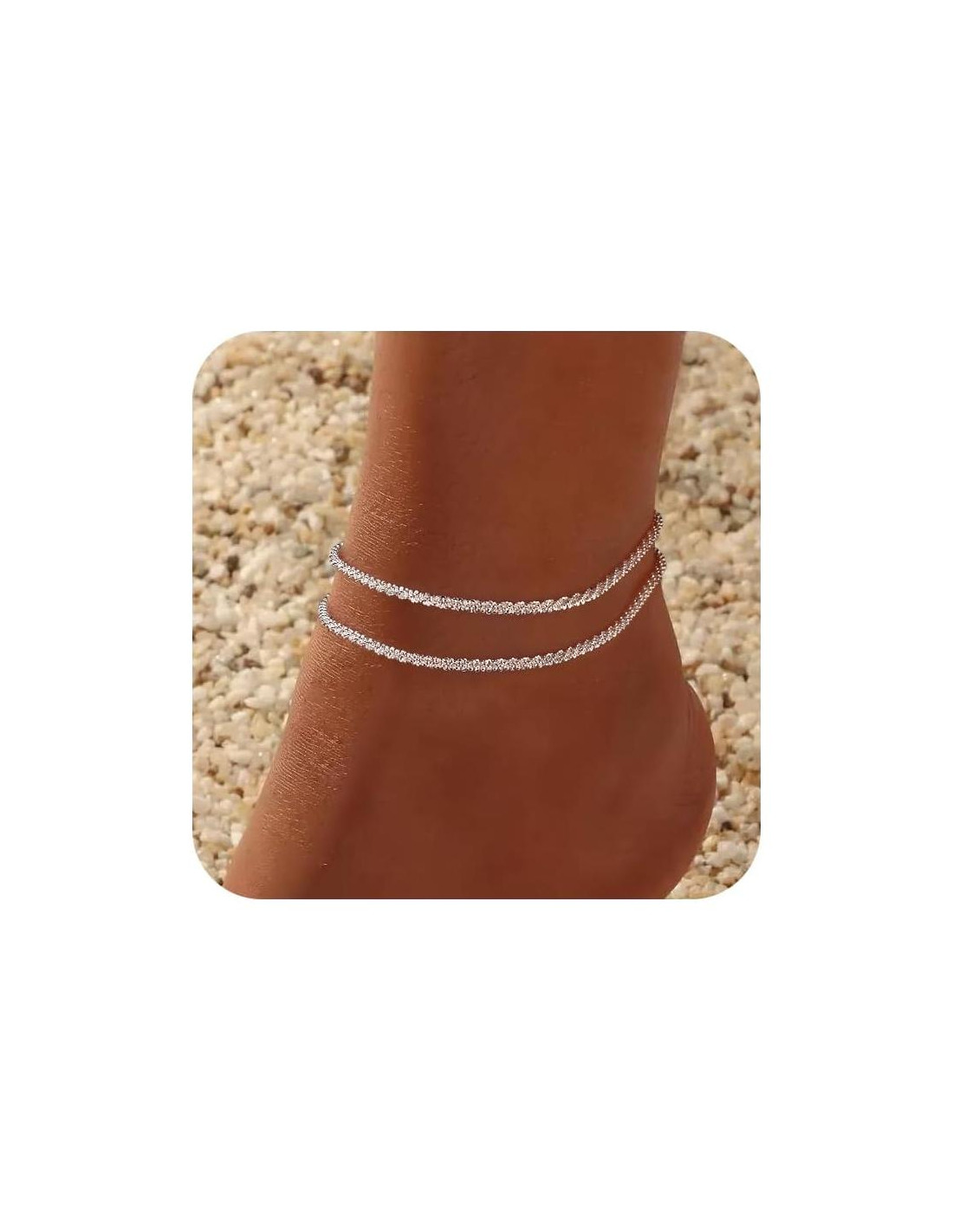 - DISEÑO DE PULSERA DE TOBILLO DE PLATA: El diseño simple de brillo plateado se puede usar solo para mostrar una sensación delicada, o apilado con otras cadenas de tobillo para crear una rica sensación de capas. Es adecuado para el uso diario, fiestas de verano o estilos de cena, y puede manejar fácilmente varias ocasiones.