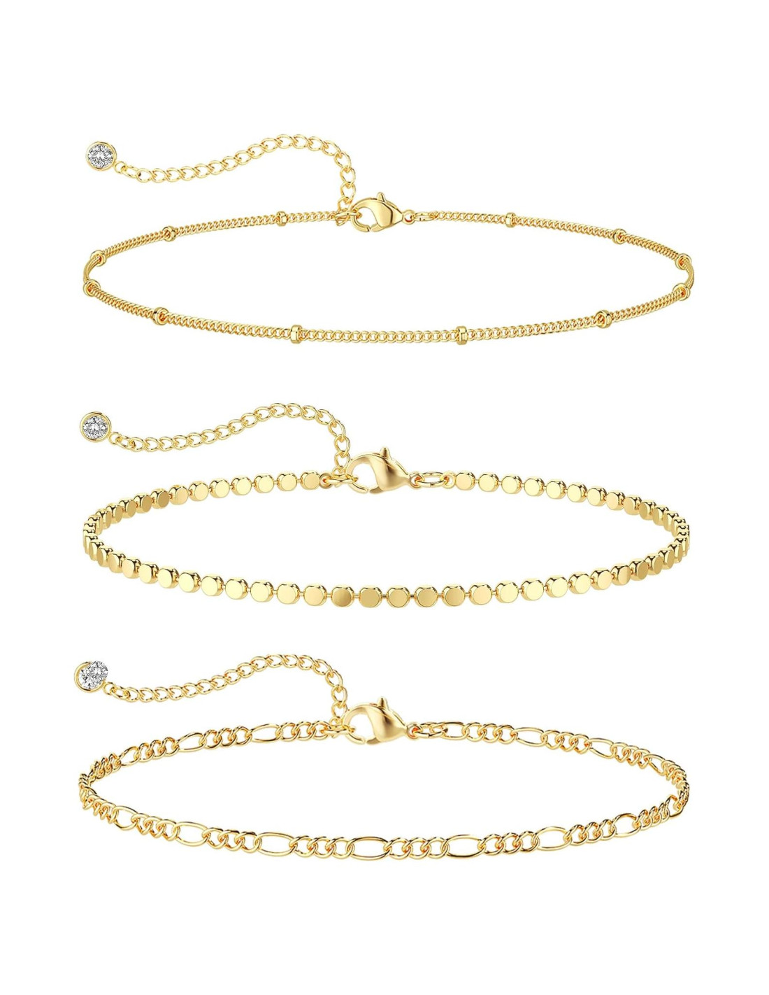 - Juego de Pulseras de Oro: Pulseras de tobillo de oro para mujeres impermeables, elige entre una variedad de diseños elegantes y estilosos para complementar cualquier atuendo, añadiendo un toque de sofisticación a tu look. Este juego de 2/3/4 pulseras de tobillo para mujeres es un artículo imprescindible de joyería de verano, perfecto para piezas en capas y para usar solo.