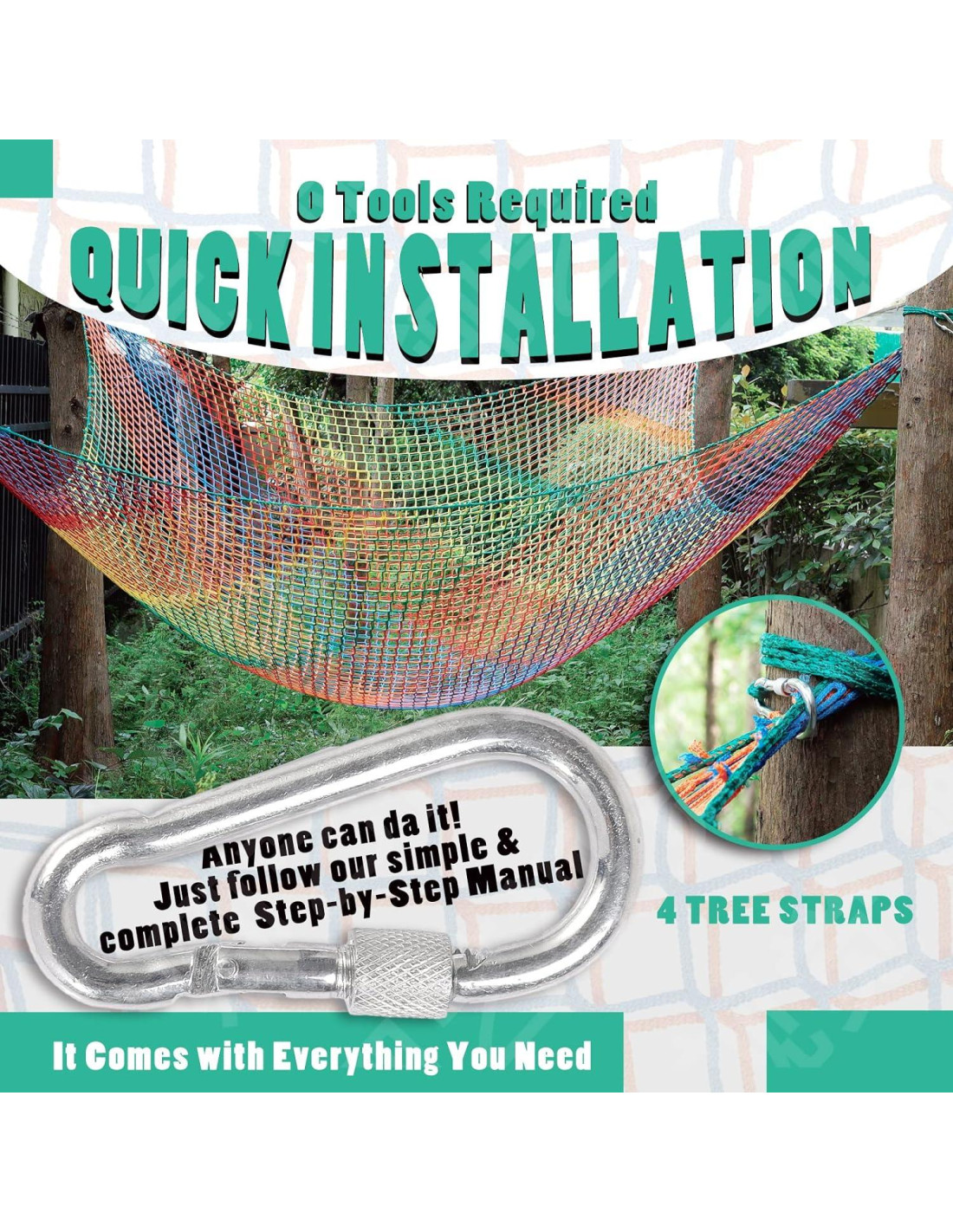 - INSTALACIÓN RÁPIDA: La red de juego es fácil de instalar: solo necesitas seguir el sencillo manual paso a paso incluido y tendrás a tus hijos escalando en poco tiempo. El kit viene con todo lo que necesitas, incluyendo 4 hebillas de senderismo, 8 campanas de colores y una bolsa de almacenamiento, para que puedas llevarlo a cualquier lugar