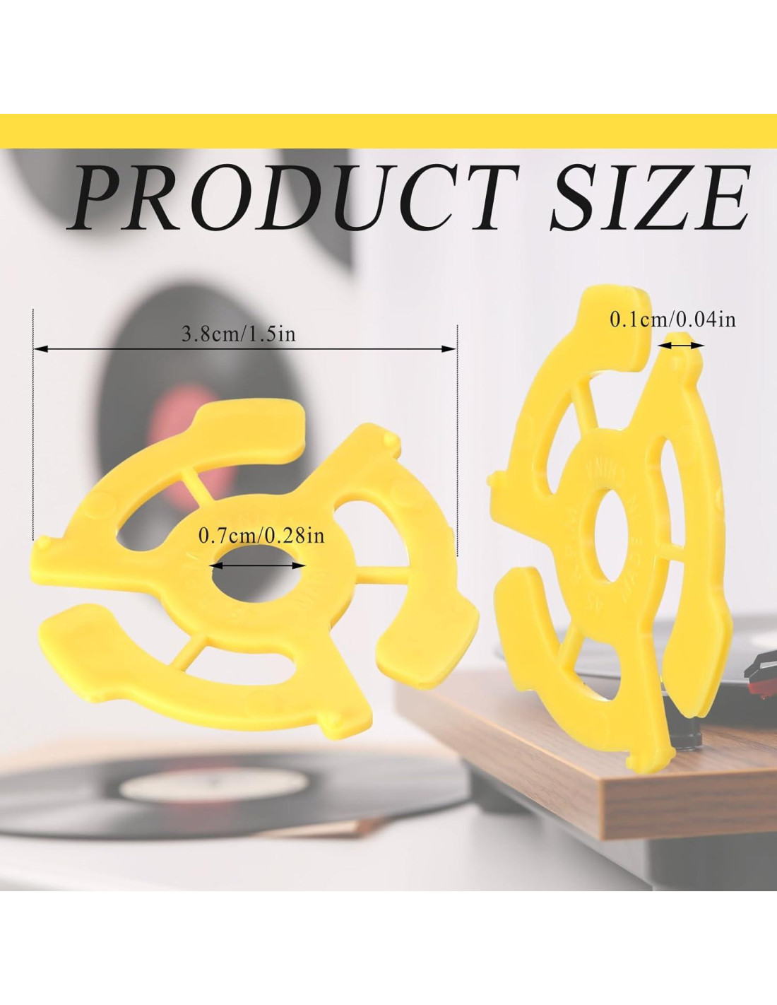 - Tamaño Ideal para Facilidad de Inserción: con un tamaño de aproximadamente 1.5 pulgadas (3.8 cm) de diámetro, este adaptador de disco de 45 puede ser fácilmente insertado o retirado del agujero central del disco de 7 pulgadas sin necesidad de otras herramientas, así que estás listo para reproducir tus melodías favoritas en poco tiempo