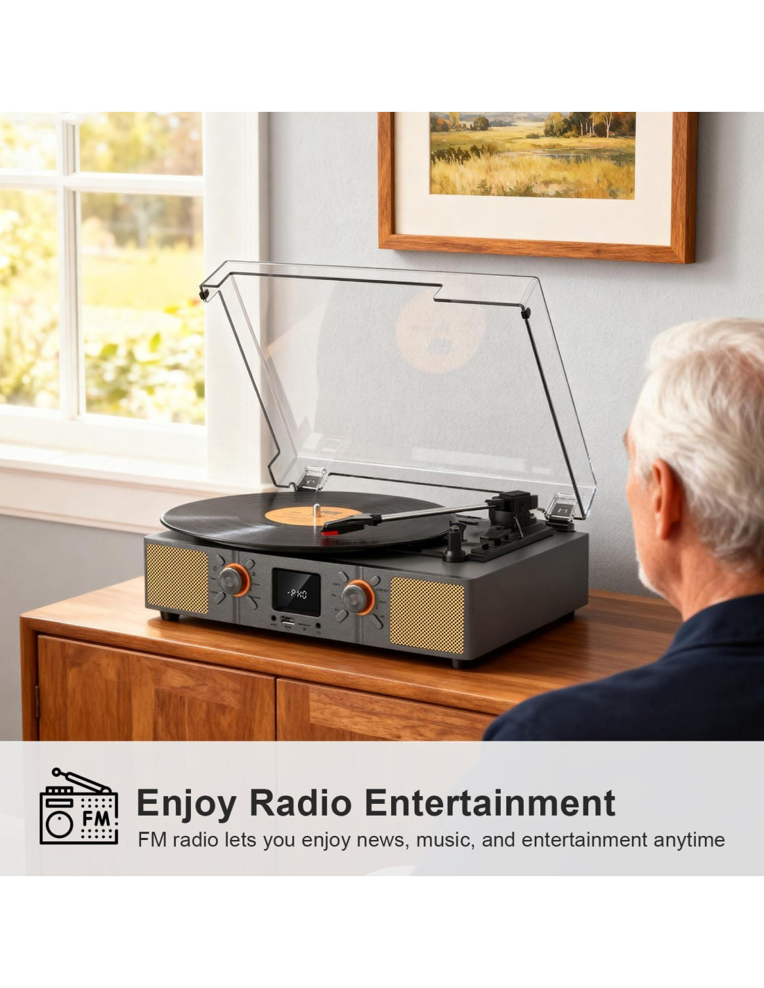 - Grabación USB, Radio FM y Parada Automática: Graba tus discos directamente en una unidad USB sin necesidad de una computadora. Para escuchar a diario, cambia a la radio FM. La función de parada automática protege tus discos al final de la reproducción.
