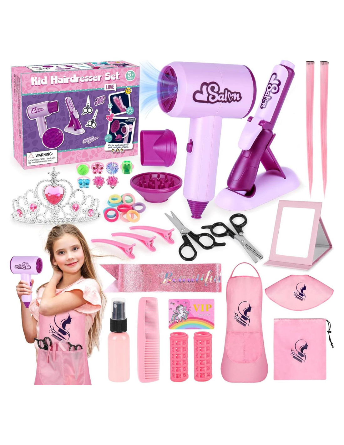 - [Mejor Regalo Ideal para Niñas] - Este set de salón de belleza para niñas es el regalo perfecto para cualquier ocasión, para ideas de regalos de cumpleaños de niñas de 3 a 12 años, para juegos de simulación de moda y estilo, salón de belleza de juego, regalos de Navidad, regalos para hijas, favores de fiesta, los niños también pueden compartirlo con sus amigos. Nuestro set de juguetes de salón promete diversión interminable y experiencias memorables para todos.