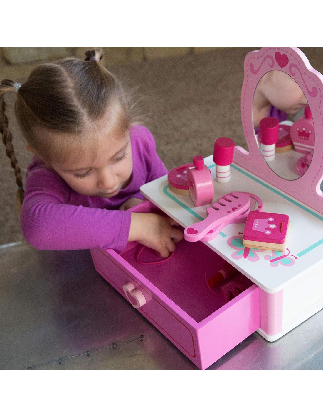 - Tocador de madera del tamaño de un niño con muchos accesorios emocionantes
