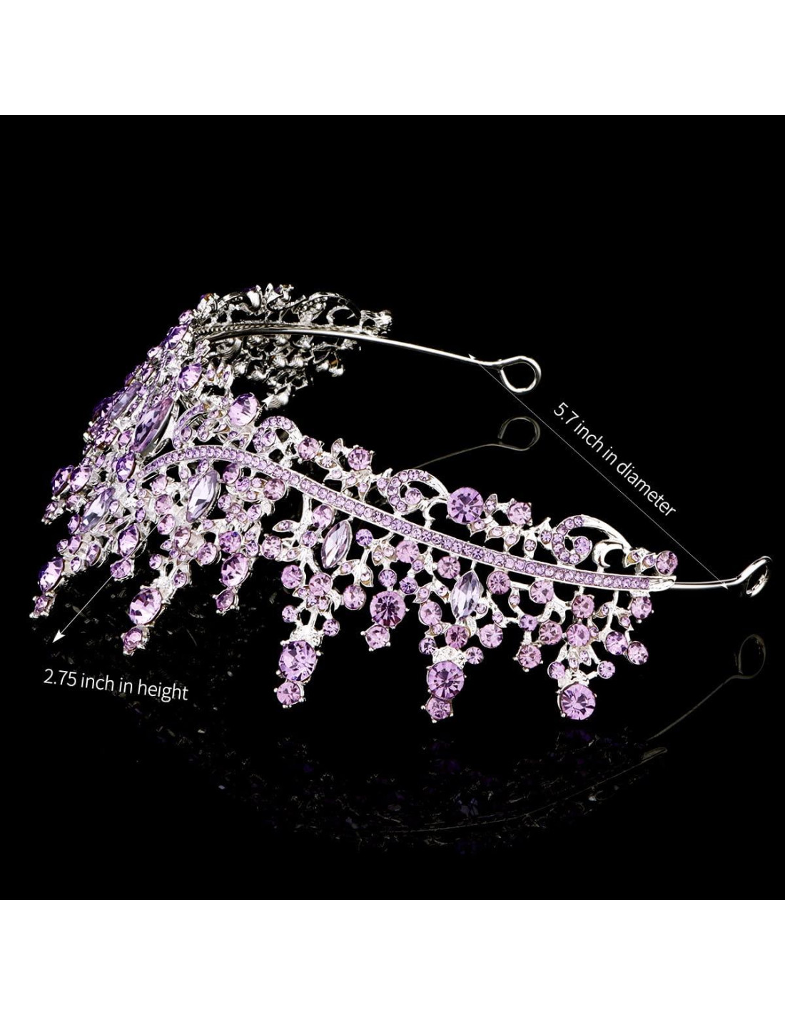 - Tamaño - La tiara de novia de lujo es plateada, aproximadamente 2.75 pulgadas (6,99 cm) de altura, 5.70 pulgadas (14,48 cm) de diámetro. Perfectamente adecuada para mujeres de cualquier edad y chicas adolescentes. Esta corona es adecuada como una corona tradicional para mujeres adultas.