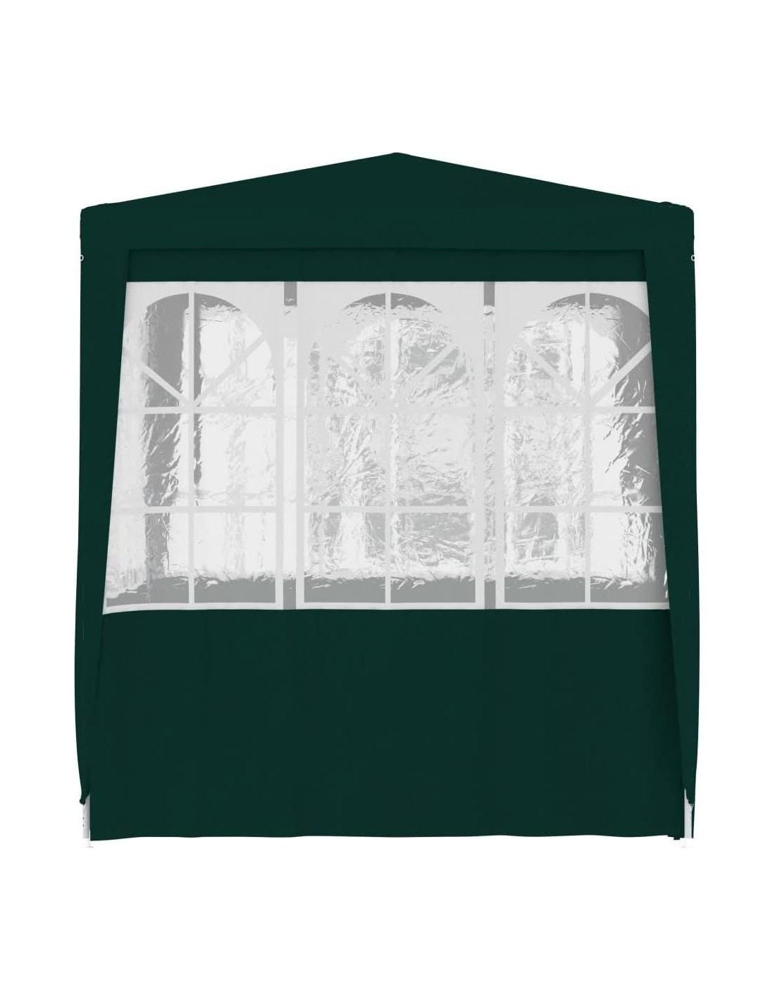 Nuestra carpa para fiestas proporciona un lugar maravilloso para entretener a su familia y amigos en todo tipo de fiestas y reuniones al aire libre. La marquesina de jardín está hecha de material de polietileno resistente a los rayos UV y al agua, por lo que es muy práctica para uso exterior. El marco está fabricado con acero resistente a la corrosión, lo que hace que la carpa al aire libre sea estable y duradera. La carpa para fiestas tiene paneles laterales, cada uno con ventanas decorativas, y 1 panel de puerta con cremallera para un fácil acceso. El gazebo de jardín es fácil de ensamblar. NOTA: Este producto NO debe usarse nunca bajo mal tiempo, como viento fuerte, lluvia intensa, nieve, tormenta, etc. Color: Verde Material: 0.3 oz/ft (8.5 g/m) PE (100% polietileno), acero Dimensiones: 6.6' x 6.6' x 7.9' (W x D x H) Altura del alero desde el suelo: 6.6' Con paredes laterales Resistente a los rayos UV y al agua Materiales de montaje incluidos: Sí